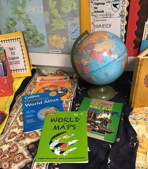 Children learn about other countries: France (European Day of Languages), Tanzania (World Book Day/Reading Week) and the countries that make up the UK when learning about the patron saints and celebrating their special days. They locate them on world maps and globes and discuss main features e.g. size, capital city, climate and differences in life styles at a basic level. They also explore more about Britain when we undertake a mini project on the country. They look at maps and atlases which are out in the provision. They can talk about differences between where they live and other areas in simple terms.