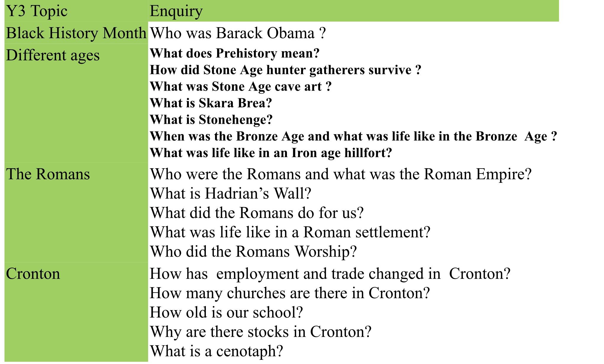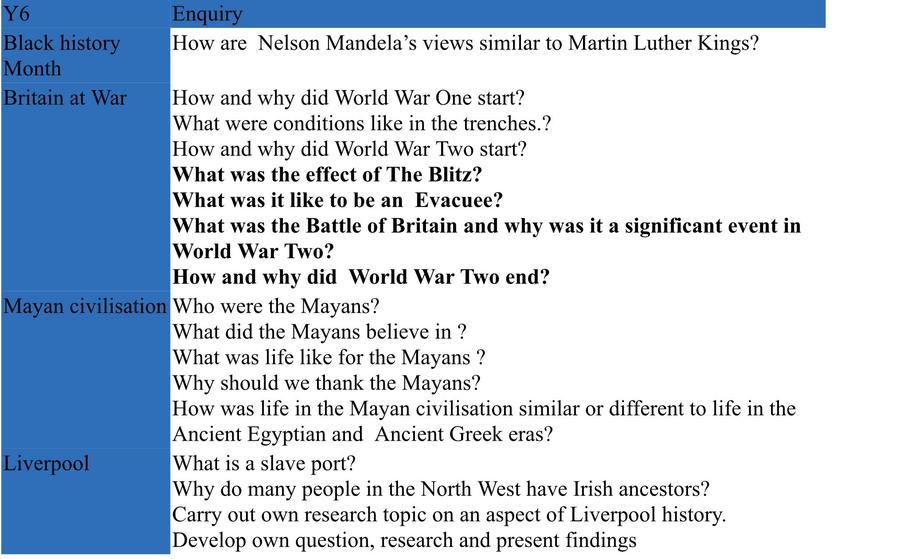 The main aims of our History curriculum at Cronton C.E. are: