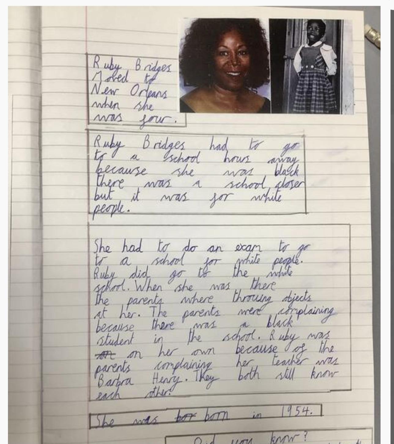 As part of Black History Month children will learn about the life of Ruby Bridges and how her school life was very different to their own.