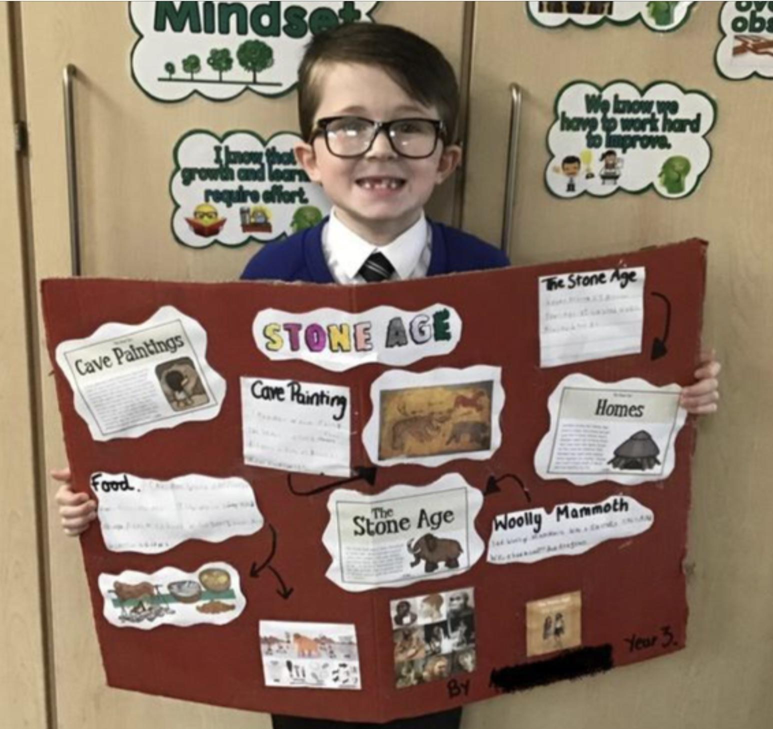 In Year three children start their chronological journey of English History by learning about the earliest civilisations through the topic ‘Different Ages’. They discover what life was like in Stone Age, Bronze Age and Iron Age Britain, comparing similarities and differences in aspects of prehistoric daily life and settlements from these different periods.