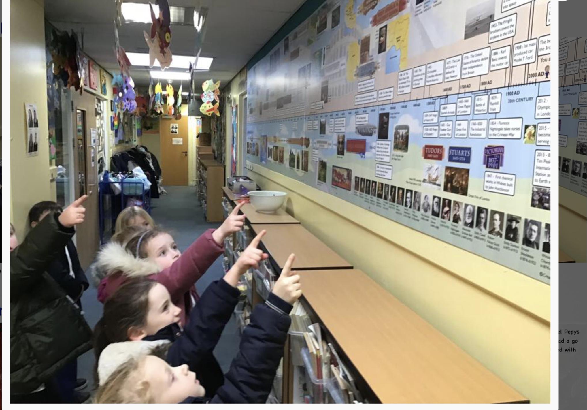We have a variety of artefacts and sources to develop and enhance learning. We also have a large scale timeline which allows children to place the period studied into chronological contact.