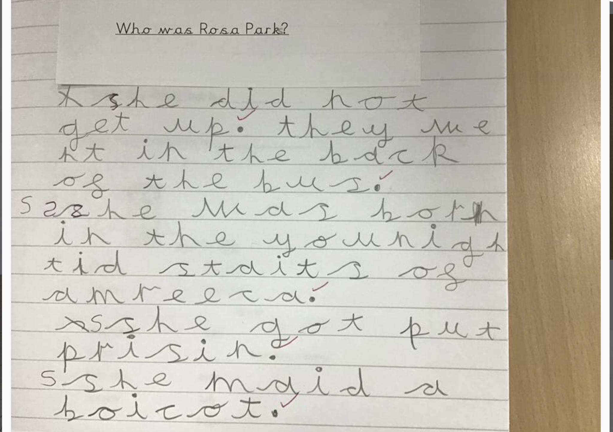 They build on their understanding gained in EYFS that they are similar to others but everyone is unique learn and they about Rosa Parks in Black history month and start their knowledge of historical inequality of black rights They know that some people treat (treated) others in ways that are not kind because of the way the look.