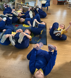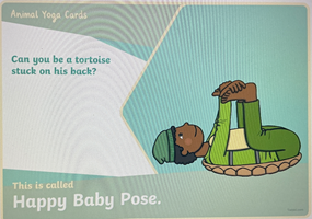 We then did some animal yoga, looking at how we can arrange our bodies into different shapes and positions too.                                                                The children loved it so much, they ask for it every day now!