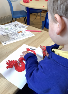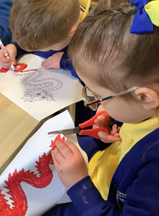 We learned about Chinese New Year and practised our colouring  and cutting skills making dragons.