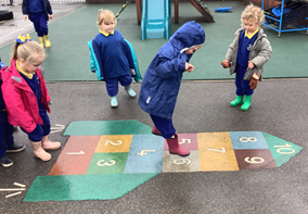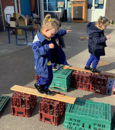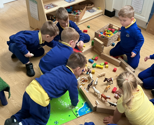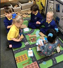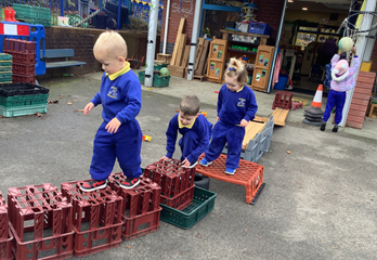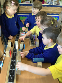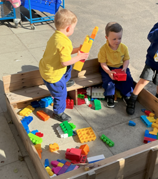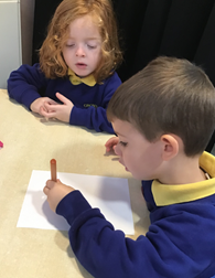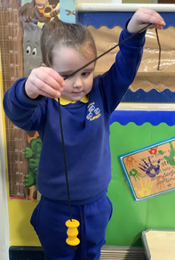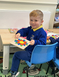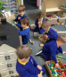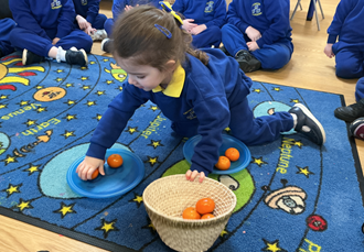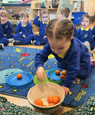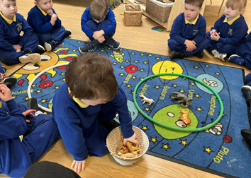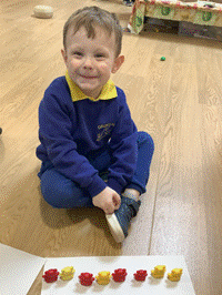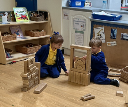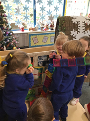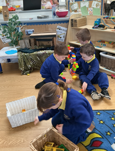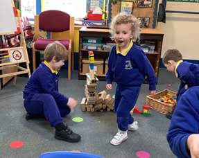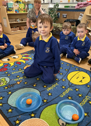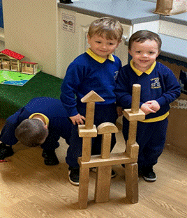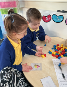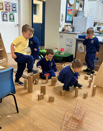 In maths we have built on prior learning where we have explored and built with shapes and objects. We have focused on arranging blocks in chosen positions and gained an awareness of space and where objects will fit or won’t fit. We have focused on positional language such as ‘in’, ‘out’, ‘on’, ‘under’, ‘over’ and ‘behind’ and have used books and rhymes to hear and use it in meaningful contexts.