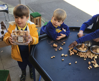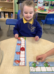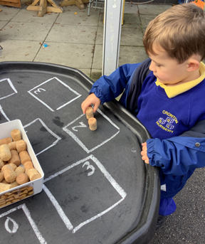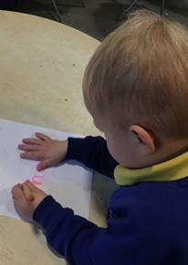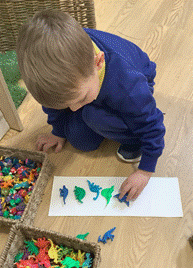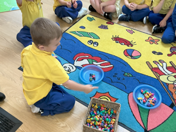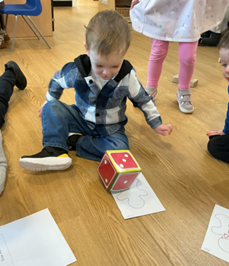 In maths we have been looking at numbers to 3. Although many of the children are capable of counting beyond this and recognising the numerals, it is important that we embed good maths foundational skills at this stage. We have modelled saying 1, 2 and 3 in play, copied the sequence of 1, 2 and 3 and have copied fingers to represent 1, 2 and 3. We have been counting actions, saying number names in order and beginning to recognise that anything can be counted. Last week we focused on subitising – recognising when there are 1, 2 or 3 objects without having to count them.