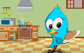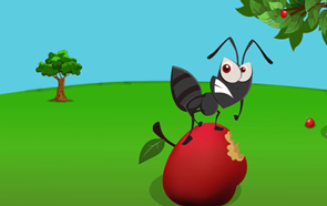 Angry ant on an apple.                                    Blue bird baking bread.