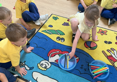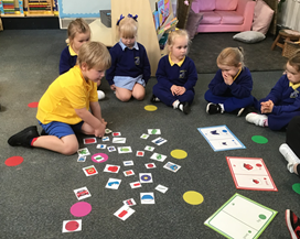 This week in Maths Time, we have been identifying and matching colours.                  We have also been sorting pictures according to colour and size.