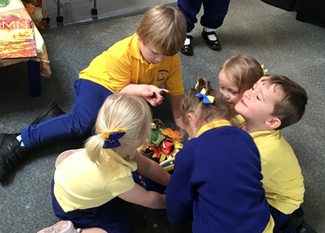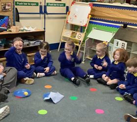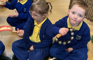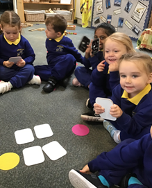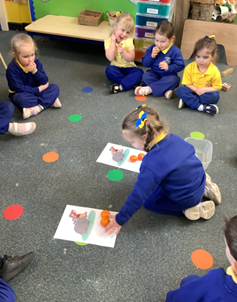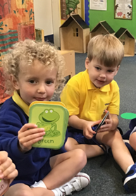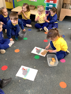 This week we have been looking at subitising. That is knowing just by looking, that there are 1, 2, or 3 objects. We have played verbs lotto; speaking about action words, taking turns and learning that we can’t always win. In phonics we have been practising our listening skills by hearing and identifying different sounds and instruments and copying clapping patterns. We wore odd socks on Tuesday for anti-bullying week and all of our stories this week have been based around the theme of being kind.