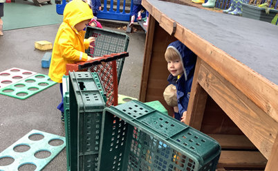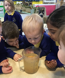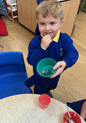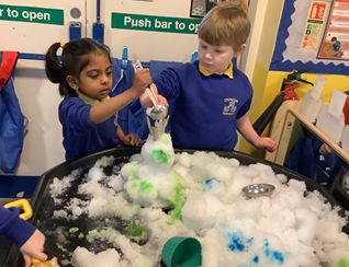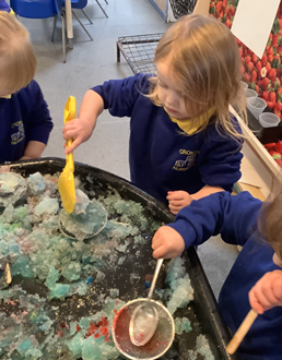 It was too cold to go outside, so we brought the snow inside instead! The children loved playing with it and exploring what happened when we added food colouring and glitter. They watched as it melted and we talked about why. A perfect start to our Science Week.
