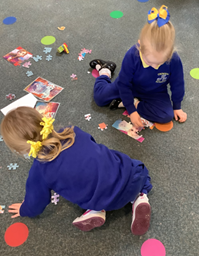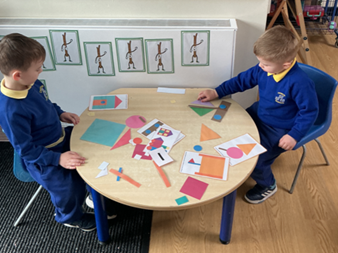 Maths - Looking at shapes and their movements and positions through jigsaws, shadow pictures           and making shape pictures.
