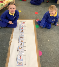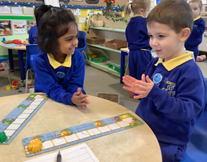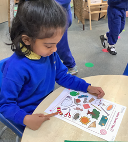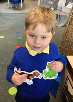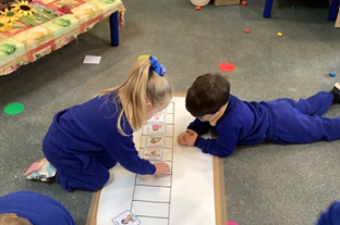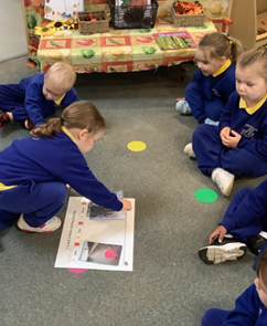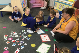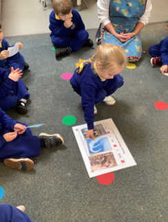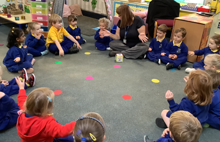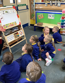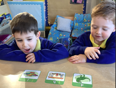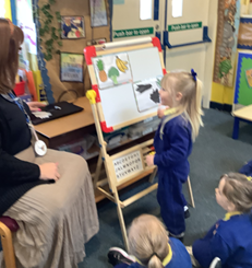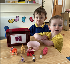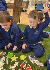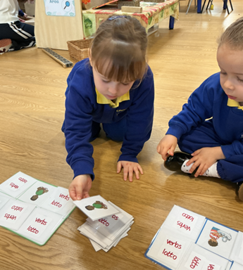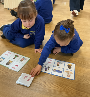 In phonics, we have continued to focus on aspects 1,2,3, developing our listening skills and sound discrimination. This week, we have played a game using verbs, or action words as we explain them to the children.