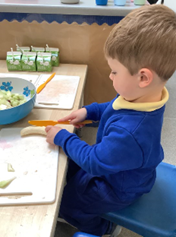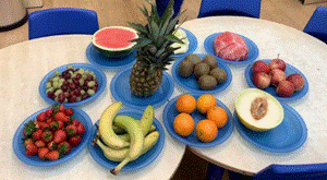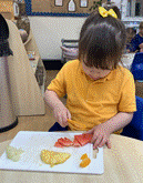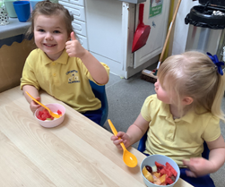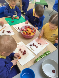 After reading Oliver’s Fruit Salad, we made our own fruit salad for snack.