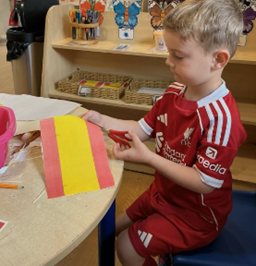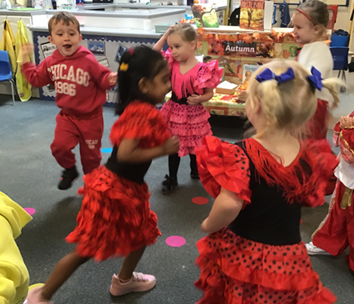 We learned about Spain, looking at photos and videos, and we made Spanish flags. We learned how to say hello in Spanish and had great fun with Sesame Street, learning how to do flamenco dancing.