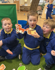 The children loved retelling the story of the three pigs, with the puppets, using all the key language and phrases from the story.