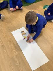 This term we are focusing on colour and pattern in maths. We  have had fun making our own colourful patterns on elephants, fish and people cut-outs.