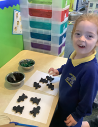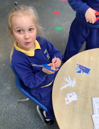 This term we are focusing on colour and pattern in maths. We have had fun making our own colourful patterns on elephants, fish and people cut-outs.