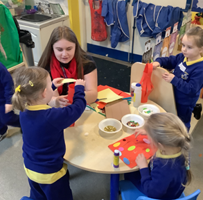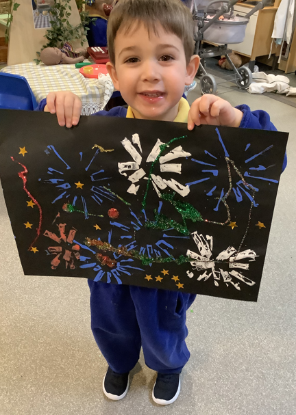 What a busy week! We learned about how Diwali is celebrated and coloured some lovely rangoli patterns. We learned about Bonfire Night and made amazing firework paintings, using a printing technique with toilet rolls. We are doing lots of counting in maths and listening games in phonics. We have had lots of fun playing and learning together.