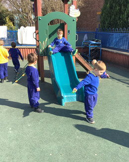 We have welcomed the new children into our two year old provision and they are settling in well. The existing nursery children have been wonderful in helping them to settle; helping them along and being so gentle and caring with them.