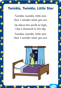 This term we are learning / singing traditional nursery rhymes. Nursery rhymes are extremely valuable to support language and communication skills, build confidence and prepare children for reading and writing as they get older.