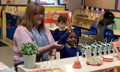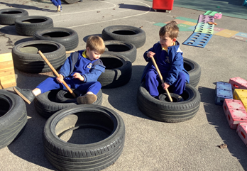 In Phonics Time, we explored the musical instruments. We followed instructions, played loudly and quietly and had lots of fun! We explored the different sounds we can make with our bodies and listened to environmental sounds to find Teddy.