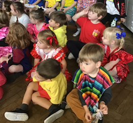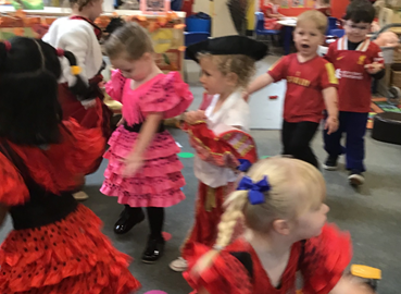 We learned about Spain, looking at photos and videos, and we made Spanish flags. We learned how to say hello in Spanish and had great fun with Sesame Street, learning how to do flamenco dancing.