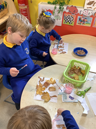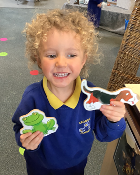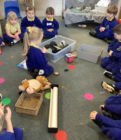 In Phonics we have been practising our listening skills through games and activities based on the three aspects of environmental sounds, body percussion and instrumental sounds. We have also been practising writing our names. We are still reading stories from our author, Nick Butterworth and the children are really enjoying the adventures of Percy and his friends.