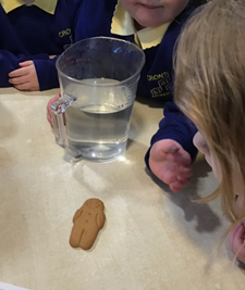 We did also did an experiment to see why the Gingerbread man didn’t want to go in the water – oh dear!! We talked about floating and sinking and our new word was dissolving.  The children loved it!