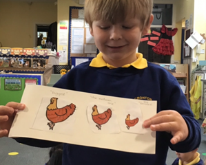 We have been reading Jack and the Beanstalk and The Enormous Turnip. The children enjoyed making stick puppets and re-enacting the story.