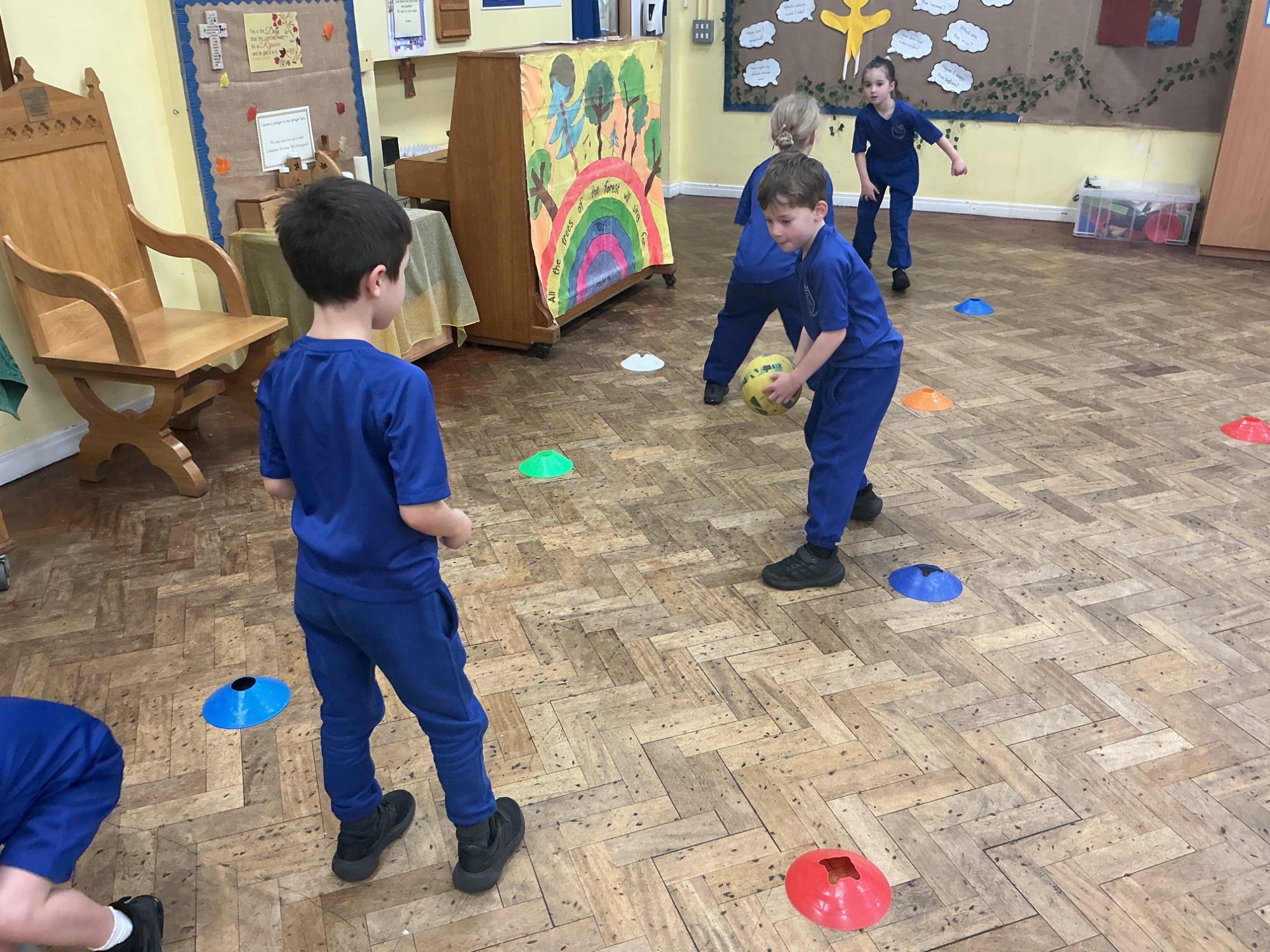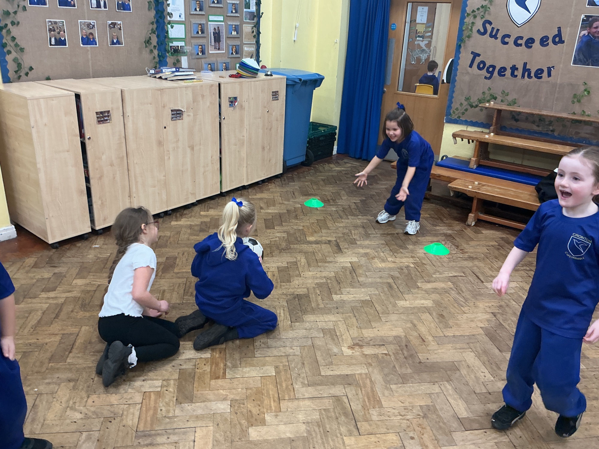 In RE, we were looking an our world and Jesus’s world and compared the similarities and differences. We searched through all the different bibles in our school, looked at the pictures and wrote down in groups what was different back then to what we have now. In Science, we looked at the question “Do we wear the same clothes all year round?”  The children said no and were able to give reasonings based on previous learning of different weathers in the seasons. In PE, we were focusing on our fielding skills and learning to work as a team to pass the beanbags from each end of the playground.