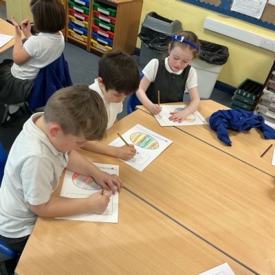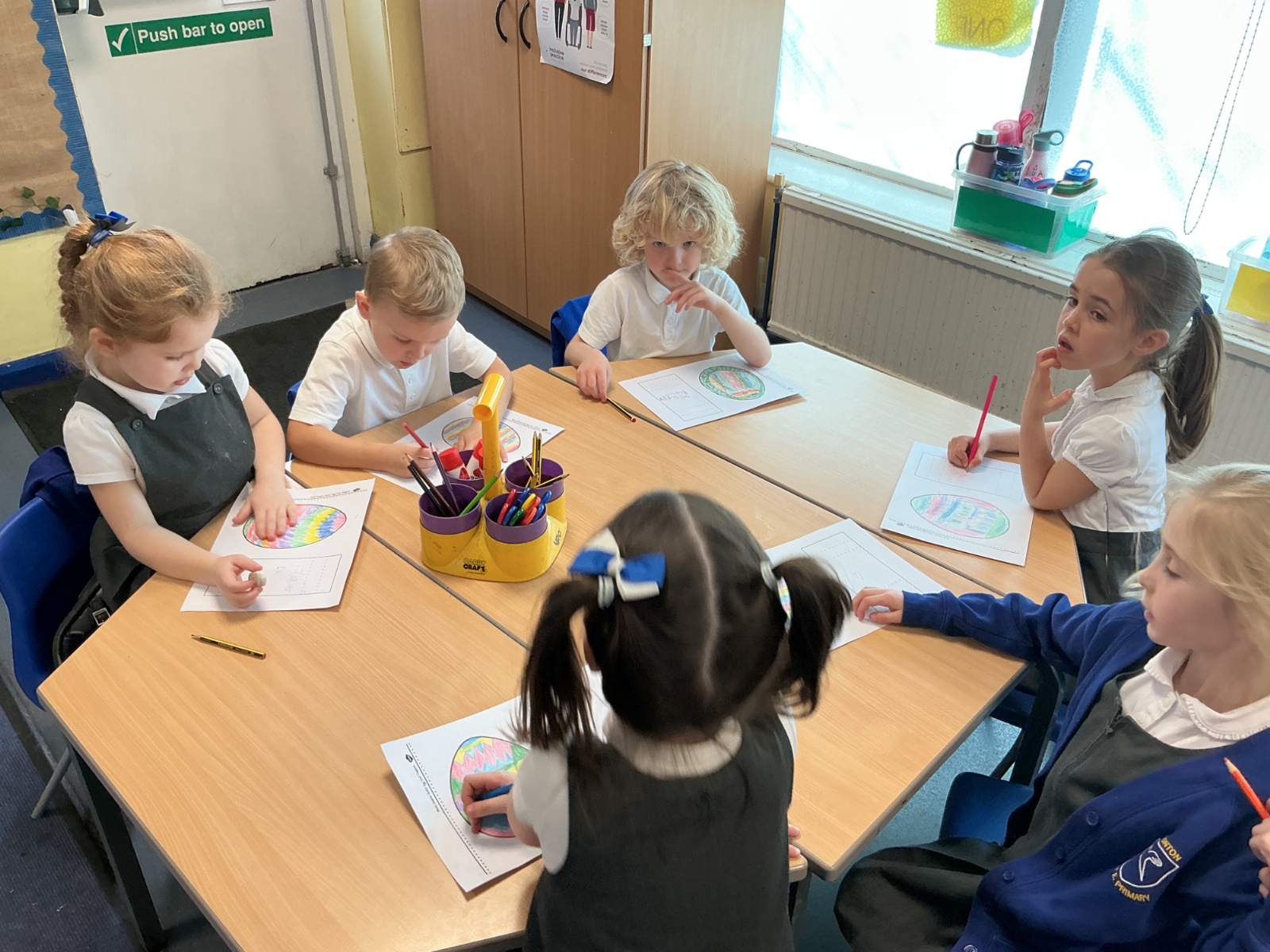 In RE, we looked at the earth and how we can look after God’s creation - we did this by designing posters. In Science, we did another experiment this week but focused on testing what materials are waterproof or absorbent. The children loved predicting before testing out the materials. In Computing, we looked at routes and how we can programme the beebots to go from one place to another and then explored different ways of doing it. In PE, we started a new topic of ball skills. The children have been learning how to dribble the basket balls in different directions. In Art, we have been exploring a new method of printing called mono-painting. We had to roll out paint, draw design into the paint with a stick, lay on paper and rub over gently. This creates an image used for printing.