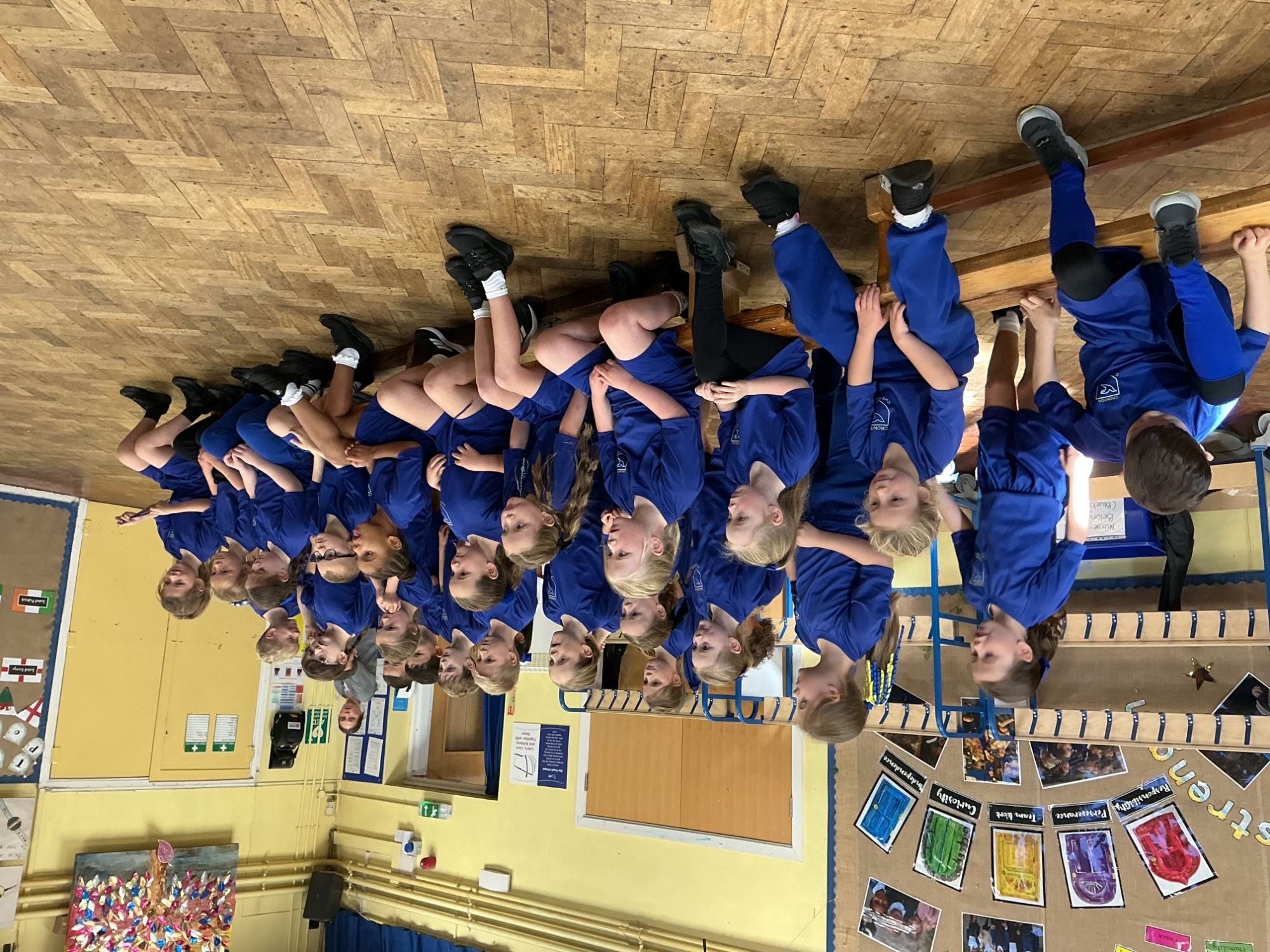 In PE we worked on team building exercises - including passing a hoop along our teams without using our hands or letting go of our team mates hands!