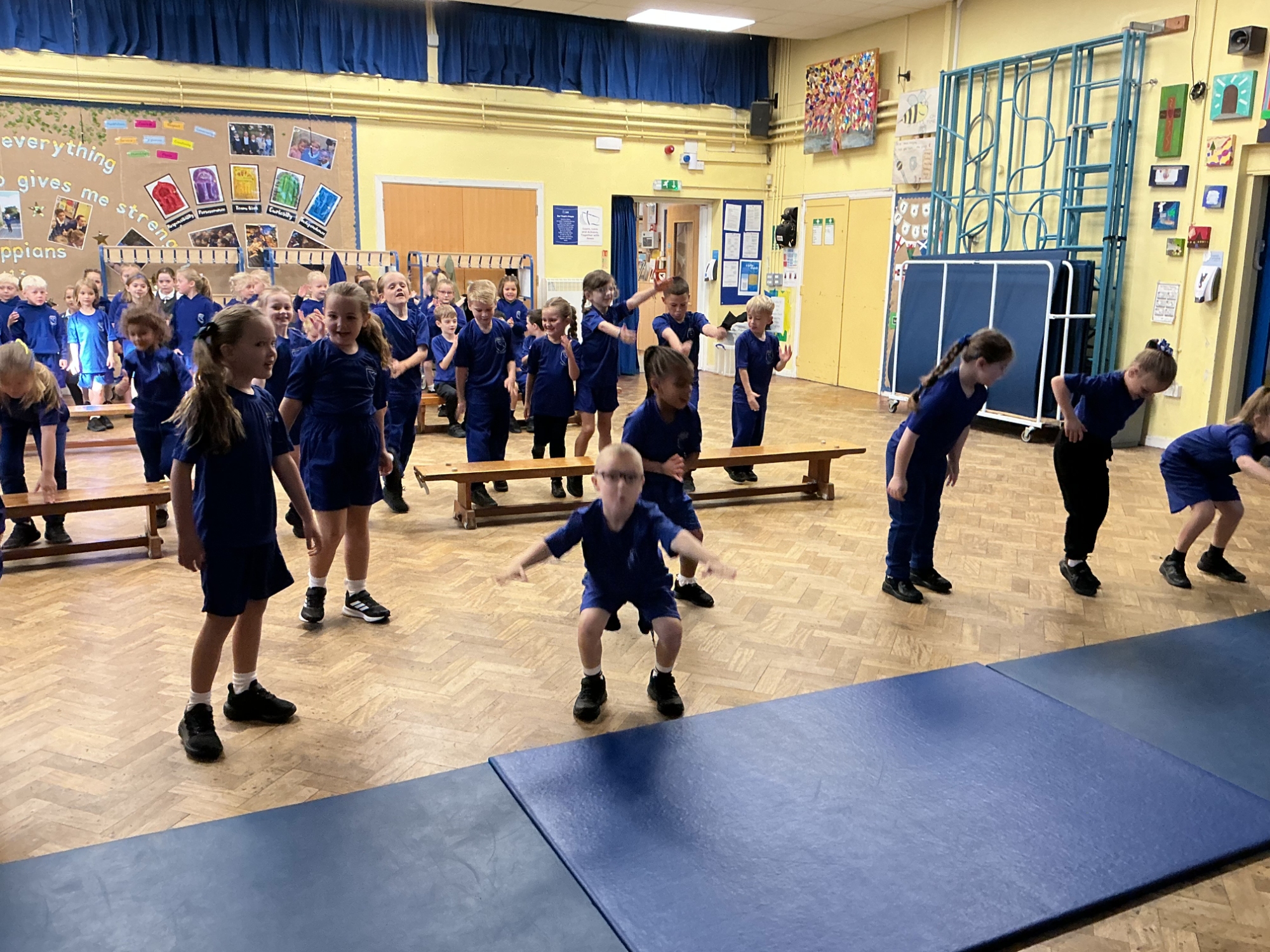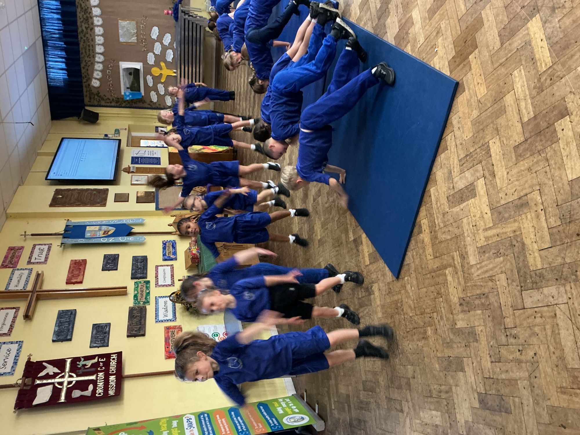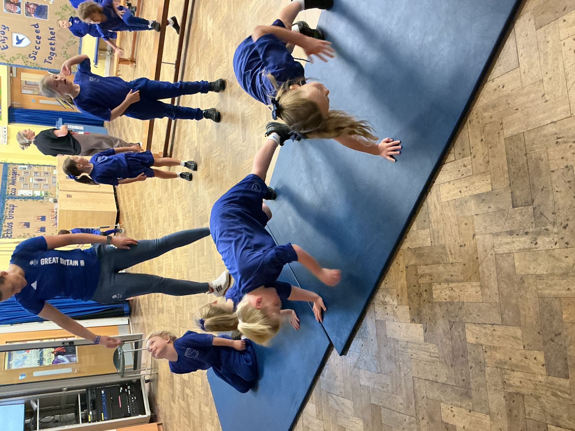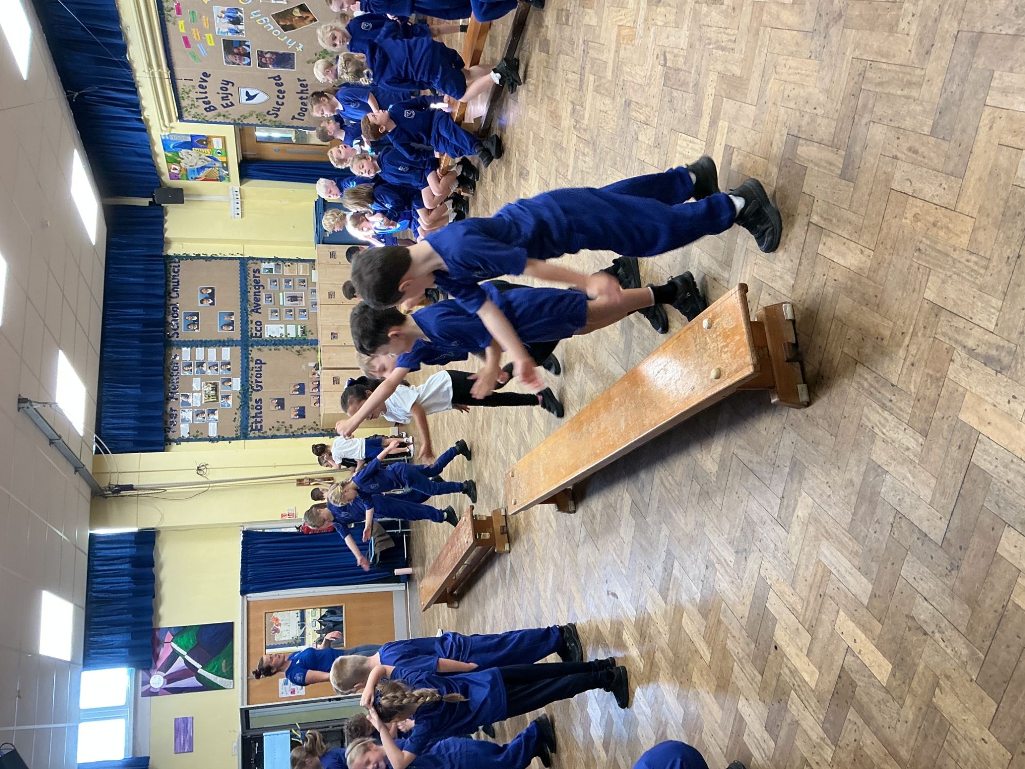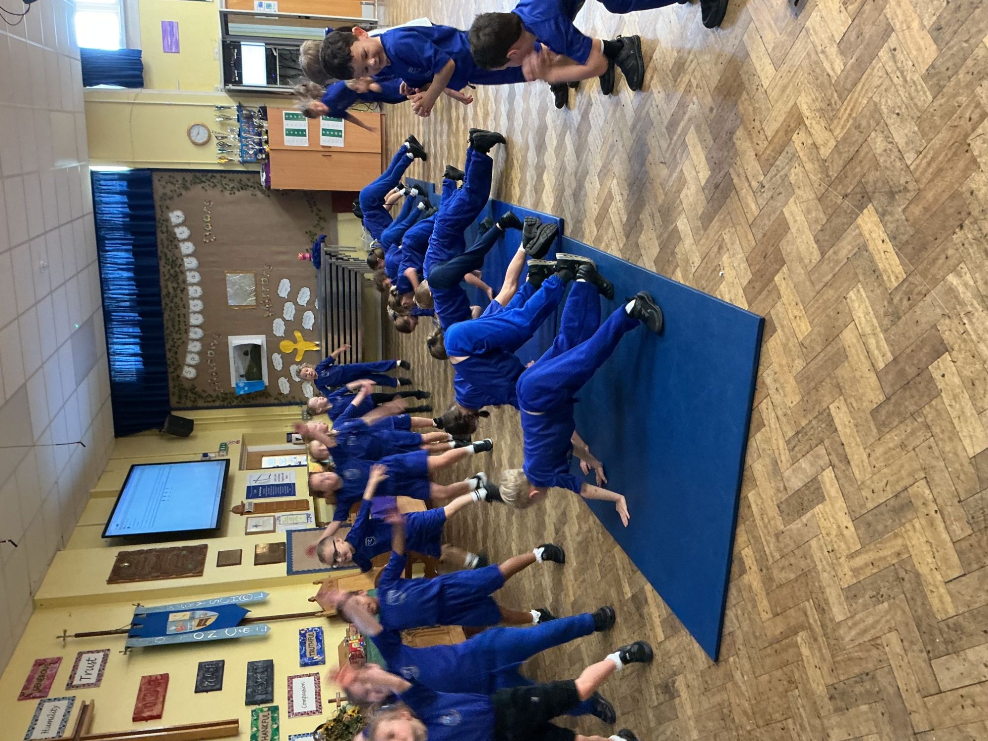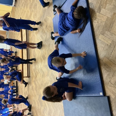In PE we started our block on gymnastics by investigating and developing our rolling, balancing and jumping and putting routines together.