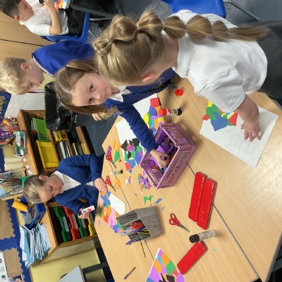 In our maths we have started our new block on 2D and 3D shapes. We have named them, looked at edges and sides, faces and vertices. We have also learned that shapes such as pentagons and hexagons are not always regular! Then we learned about symmetry and tired our best to complete shapes so that they were symmetrical.
