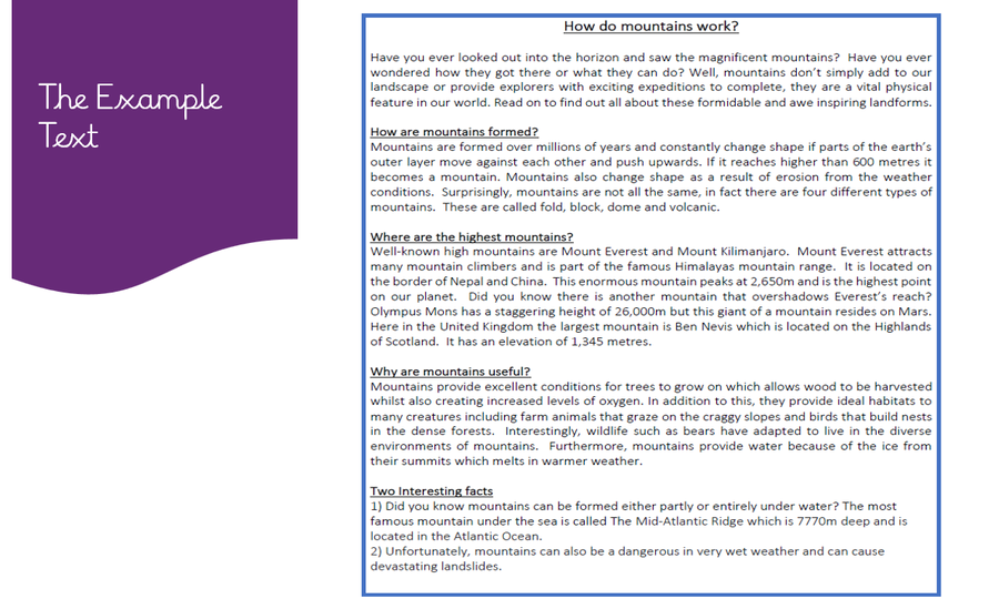 In English, we have started to look at our Example Text and analyse the language features that have been used.