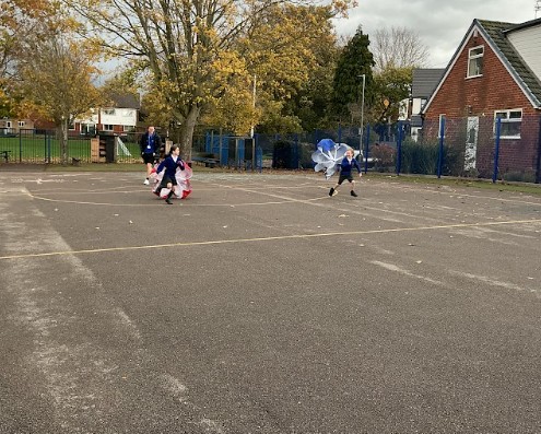 In science our focus has been on air-resistance. We carried out an exciting experiment to see how different shapes fall through the air comparing a paper aeroplane and a scrunched-up ball. The children discussed how the shape affects how the air moves around an object, linking this to streamlining and the effects of air resistance. We also took our learning outside and experimented with running parachutes. The children quickly discovered how much harder it is to run when air resistance is acting against them!