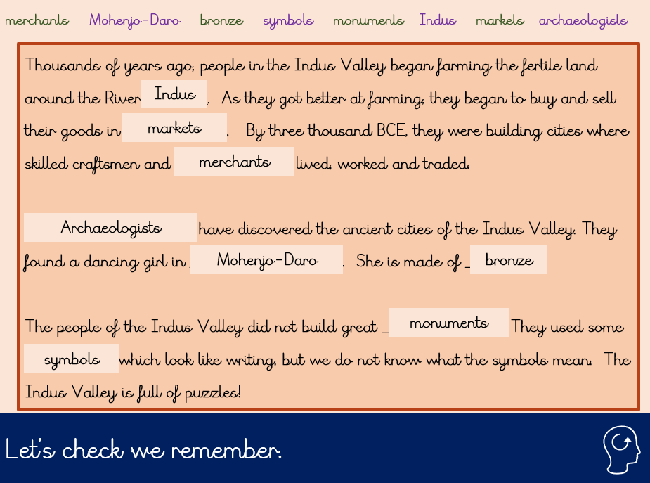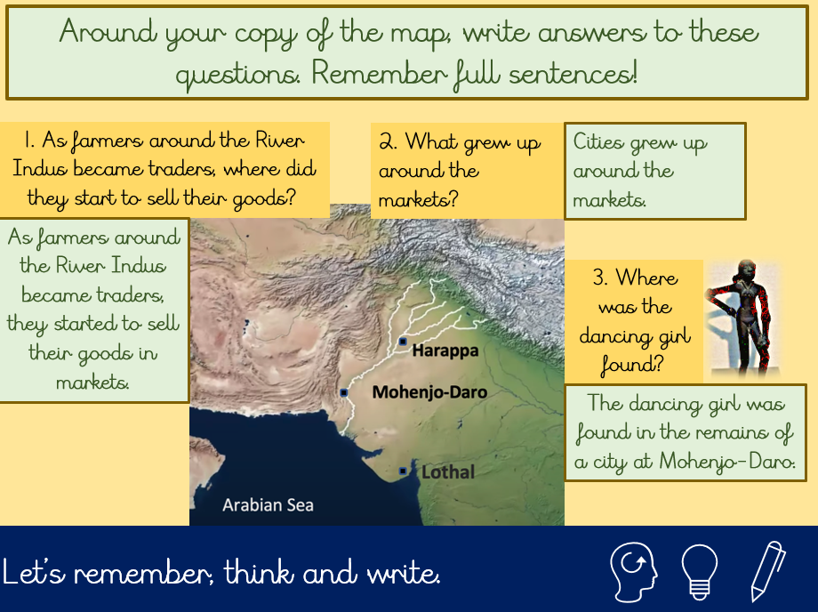 Our focus in history was “What was similar about the cradles of civilisation?” The class identified key features shared by early civilisations, including life near rivers, the shift from nomadic to settled farming communities, access to water, the development of writing, storytelling traditions, and the use of bronze.