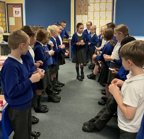 In RE, we’ve explored Harvest and how it is celebrated by Christians and through other traditions such as Pongal, Vendimia, and the Olivagando Festival. We also learned about Sukkot and what a sukkah is. The children have been very engaged and can confidently explain why Harvest is celebrated. As part of our Harvest celebrations, the children brought in food donations for the Trussell Trust Widnes Foodbank, showing generosity and care for others. They also put on a brilliant Harvest Festival worship, speaking confidently and singing beautifully. It was wonderful to see their teamwork, enthusiasm, and kindness shine through.