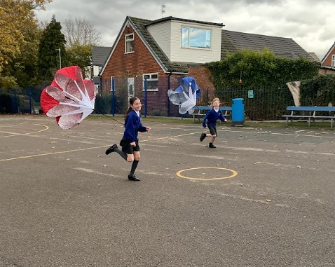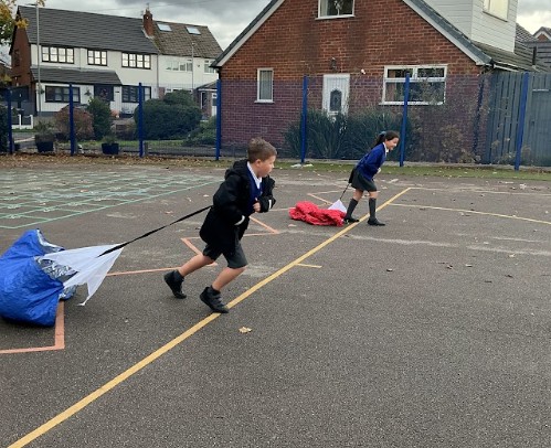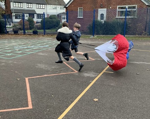 In science our focus has been on air-resistance. We carried out an exciting experiment to see how different shapes fall through the air comparing a paper aeroplane and a scrunched-up ball. The children discussed how the shape affects how the air moves around an object, linking this to streamlining and the effects of air resistance. We also took our learning outside and experimented with running parachutes. The children quickly discovered how much harder it is to run when air resistance is acting against them!