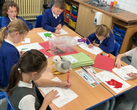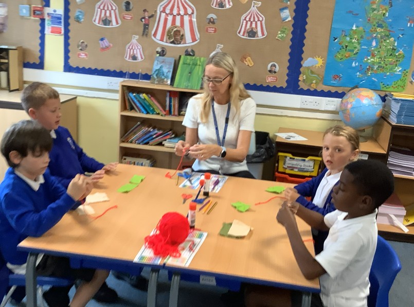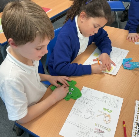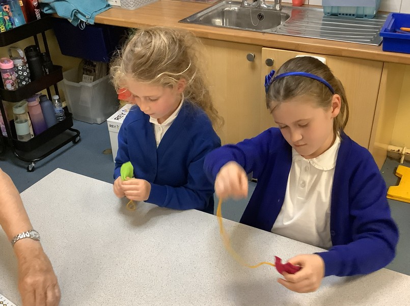 In DT, the children have been working with Mrs Gillies to design and begin creating their own puppets. They have shown fantastic creativity and problem-solving skills and it’s clear they’ve had lots of fun bringing their ideas to life – with only a few tangled threads along the way!