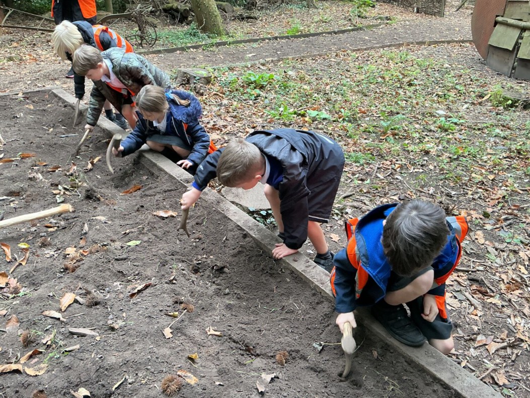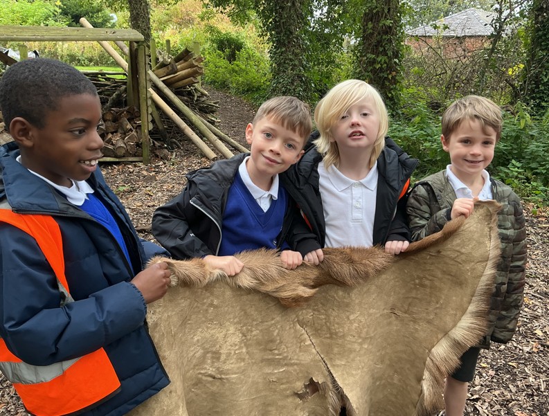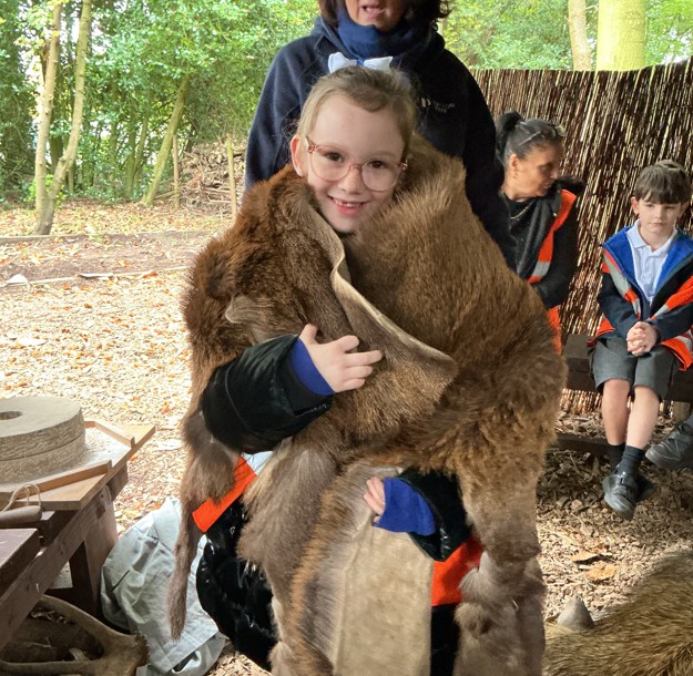 Next, the children discovered how early farmers would have grown their own food. Using animal bones to dig the soil and plant seeds, they learned how people used what was available in nature to survive. Everyone was amazed by how effective the tools were and how resourceful Stone Age people had to be. They also explored the different uses of animal fur, discovering how it could be turned into clothing, bedding, and even added to shelters for warmth and protection. It was fascinating to see how every part of an animal could be used to meet the needs of daily life.