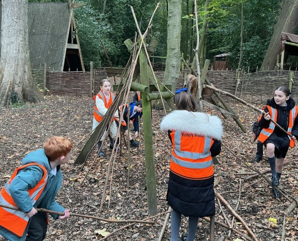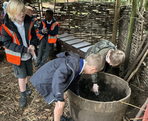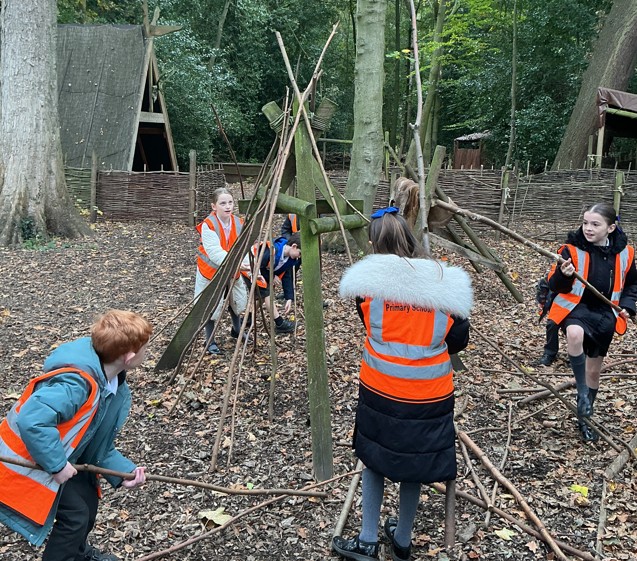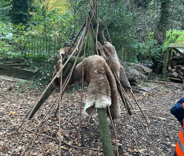 The day began with the children exploring how people in the Stone Age built their homes. They first constructed a simple shelter using sticks and added the soft fur of a red deer to provide protection and warmth, imagining how early humans kept themselves safe from the elements. Afterwards, they looked at how wattle and daub could improve their shelters, carefully weaving sticks and covering them with a mixture of mud and straw. It was brilliant to see their teamwork and problem-solving as they experimented with this ancient building technique.