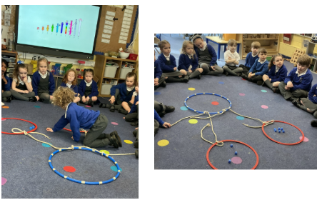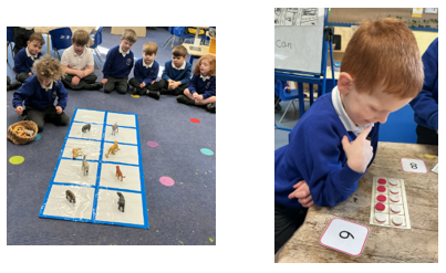 Following on from last week’s learning, the children have been using part–whole models (rather than ten frames) to explore the composition of the numbers 6, 7 and 8. We have been talking about how numbers can be split into different parts and put back together again.
