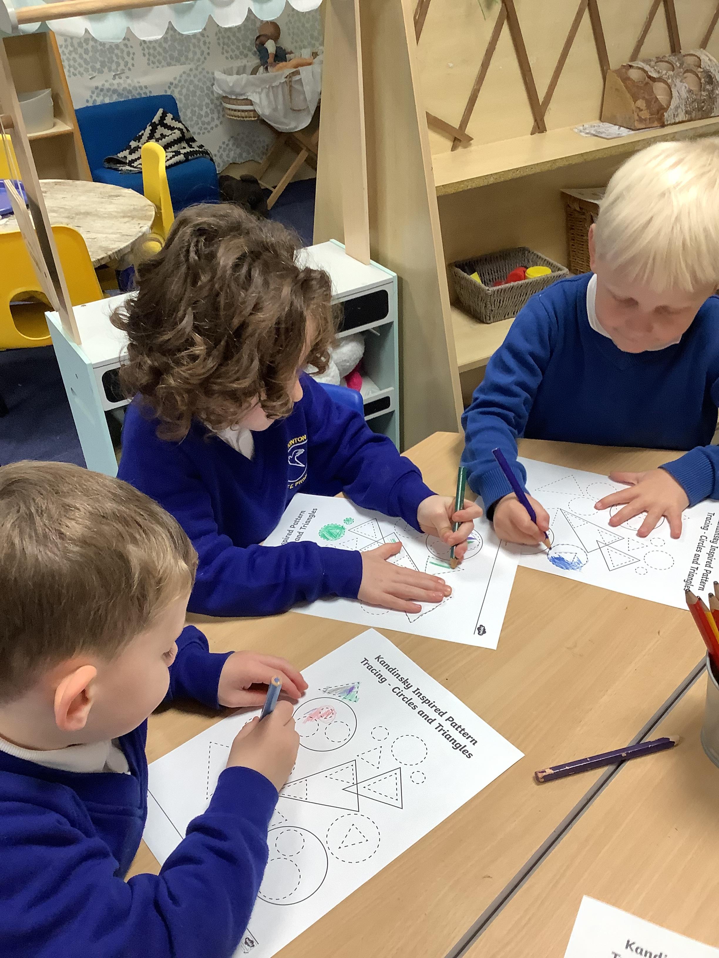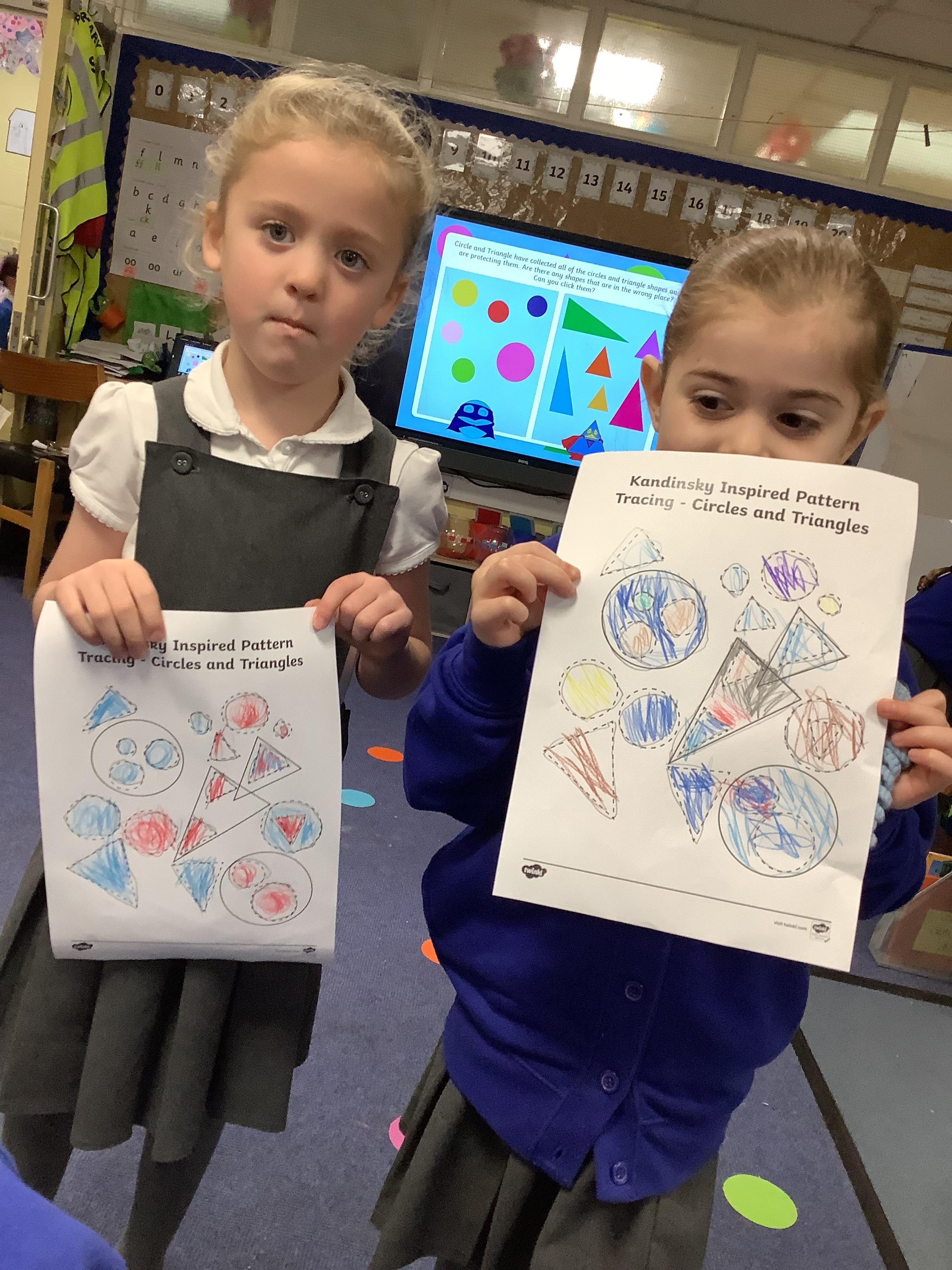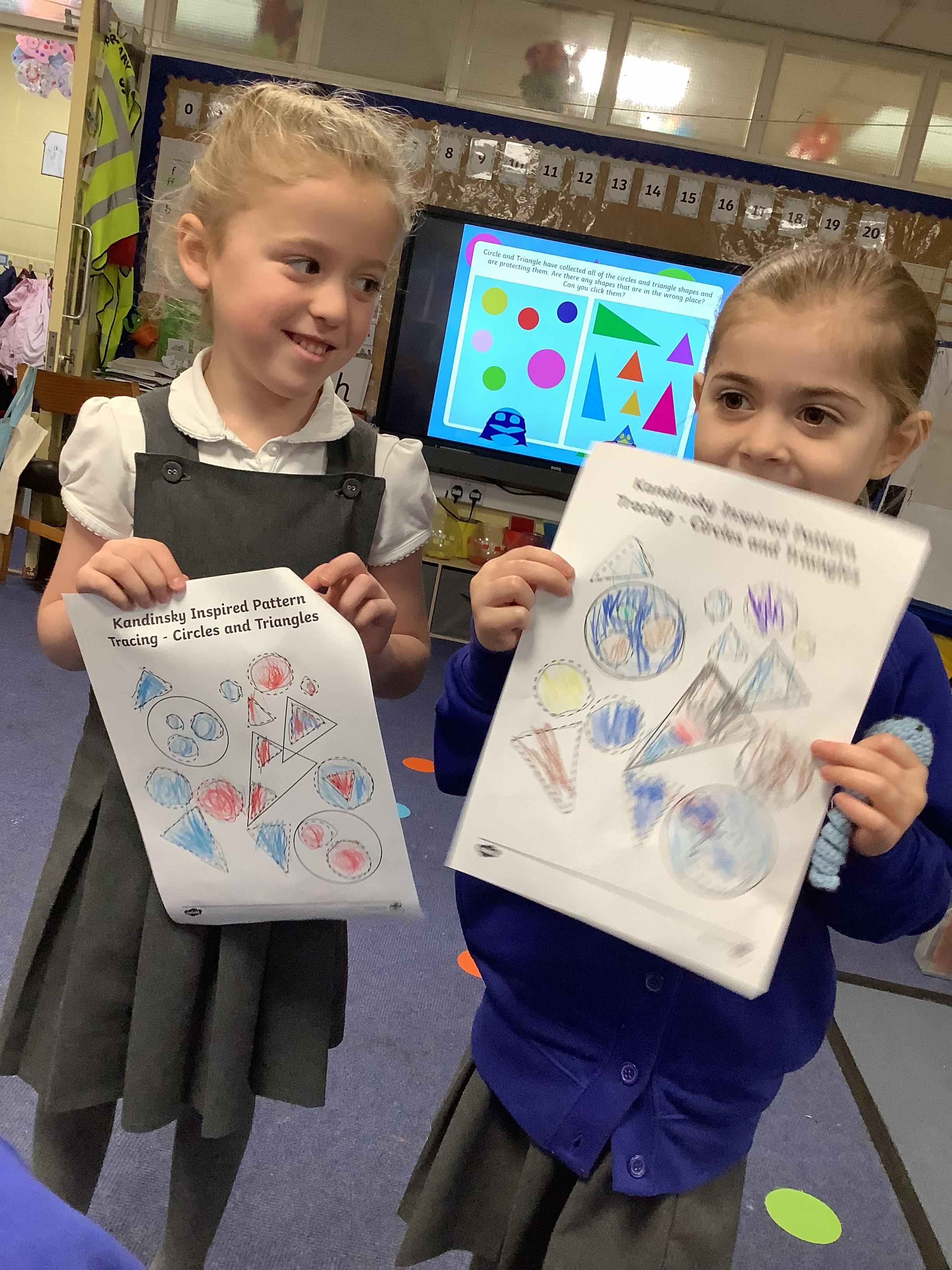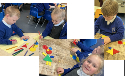 In maths, we’ve been learning all about circles and triangles. We discovered that circles have one curved side and triangles have three straight sides. The children sorted shapes, created pictures using circles and triangles, and used mathematical vocabulary to describe their properties. This helped us develop our understanding of shape and spatial awareness.