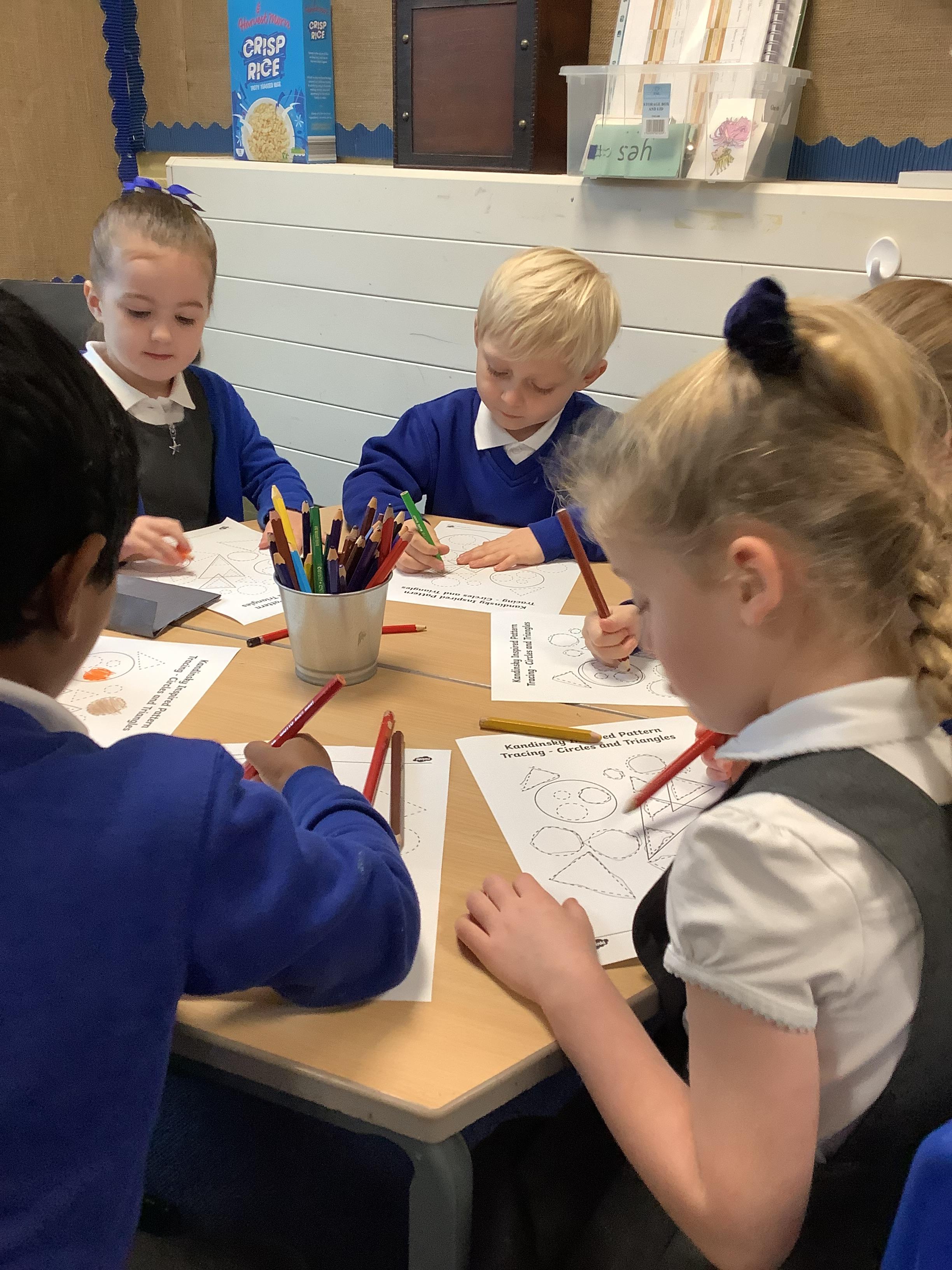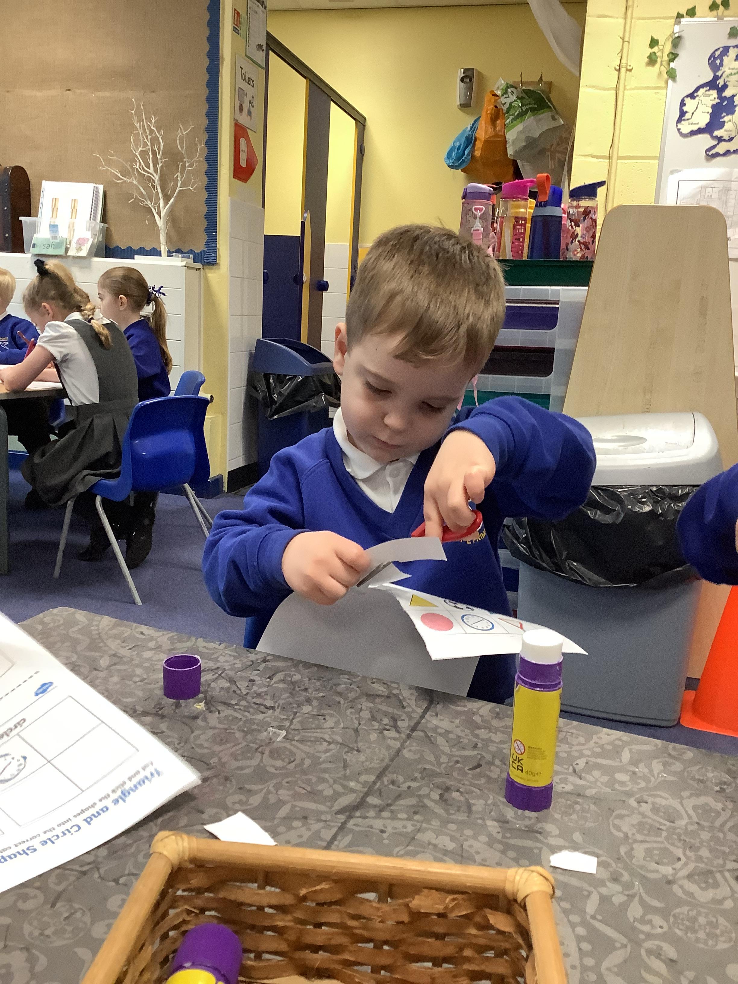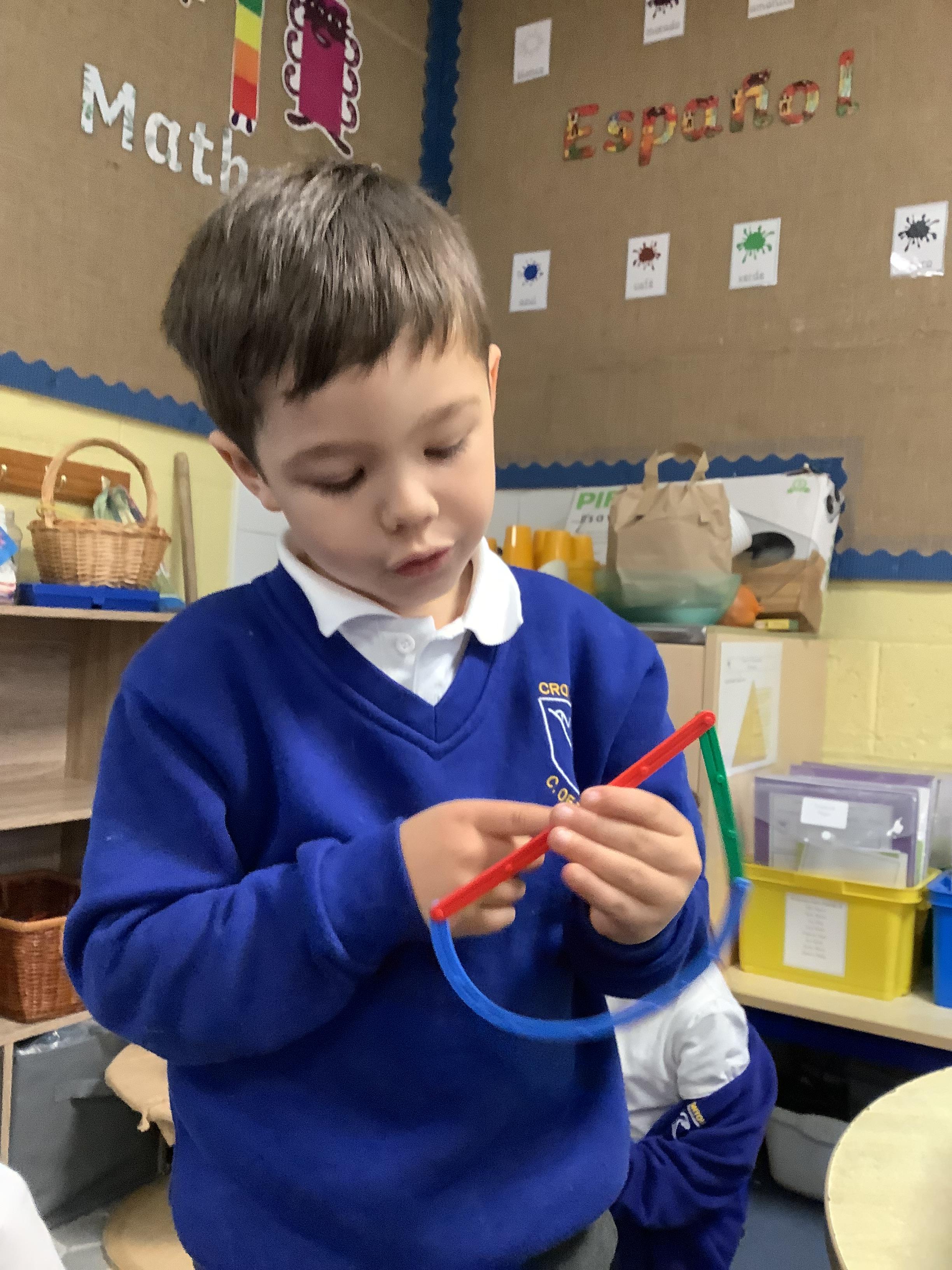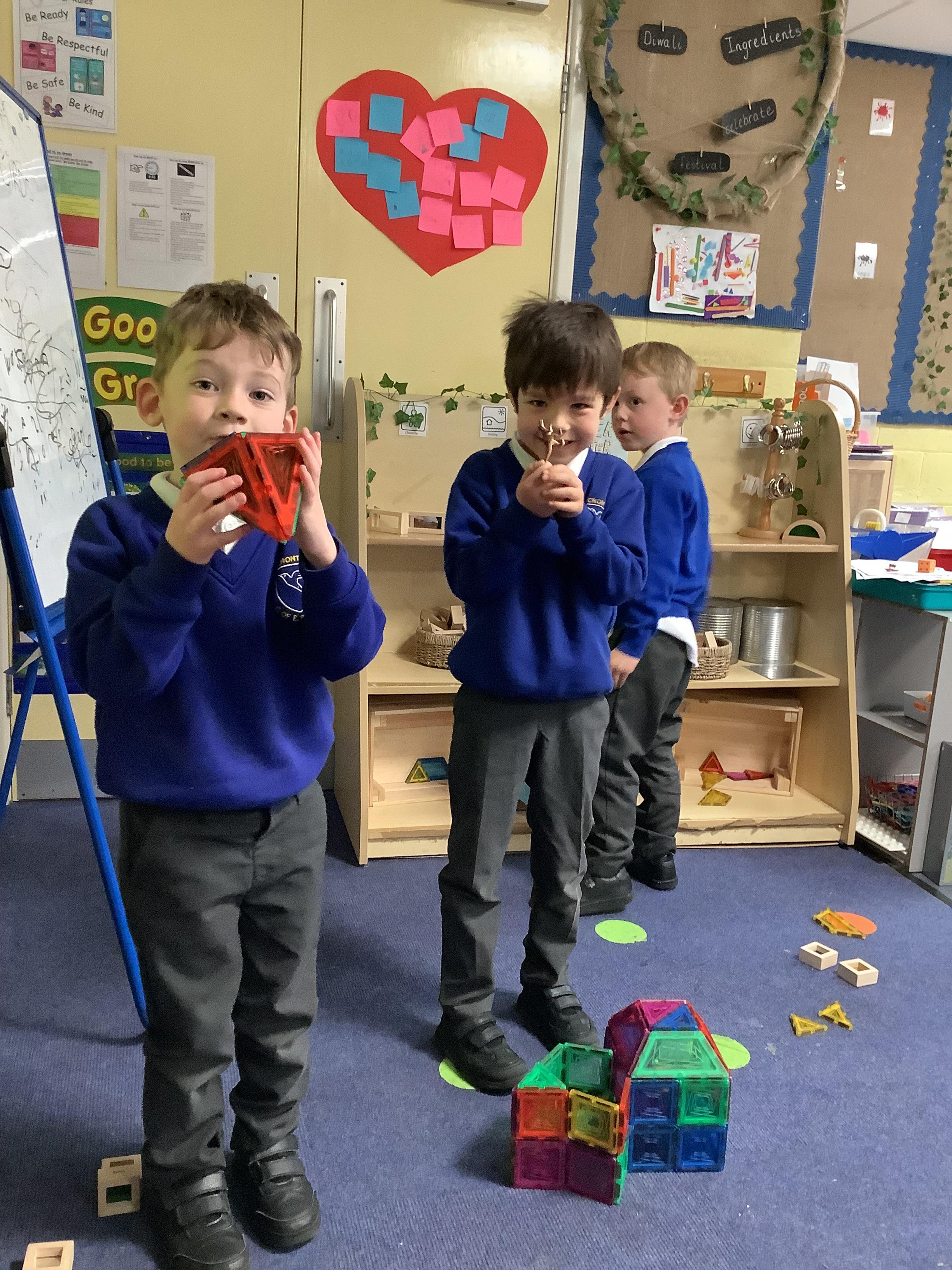 In maths, we’ve been learning all about circles and triangles. We discovered that circles have one curved side and triangles have three straight sides. The children sorted shapes, created pictures using circles and triangles, and used mathematical vocabulary to describe their properties. This helped us develop our understanding of shape and spatial awareness.