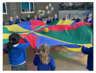 Outdoor learning this week was full of excitement as we used the parachute to help develop our upper body strength. The windy weather added an extra bit of fun as the parachute lifted and rippled—there were lots of smiles and laughter! The children worked brilliantly as a team and showed fantastic enthusiasm throughout.