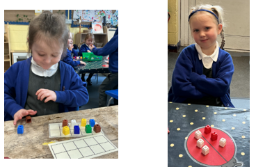 In maths, we have been learning about the conservation of numbers, focusing on 4 and 5. We explored different patterns of counters on ten frames and discovered that even when the counters were moved around, the amount stayed the same. This helps children understand that numbers don’t change just because their arrangement does.