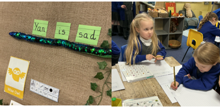 We are making excellent progress in our phonics sessions and applying our learning within our Literacy sessions. This week we wrote a sentence for the ‘ending’ part of the story. ‘Dan got it back’. We also completed our story plans with the Problem Penguin and Elephant Ending parts of the story.