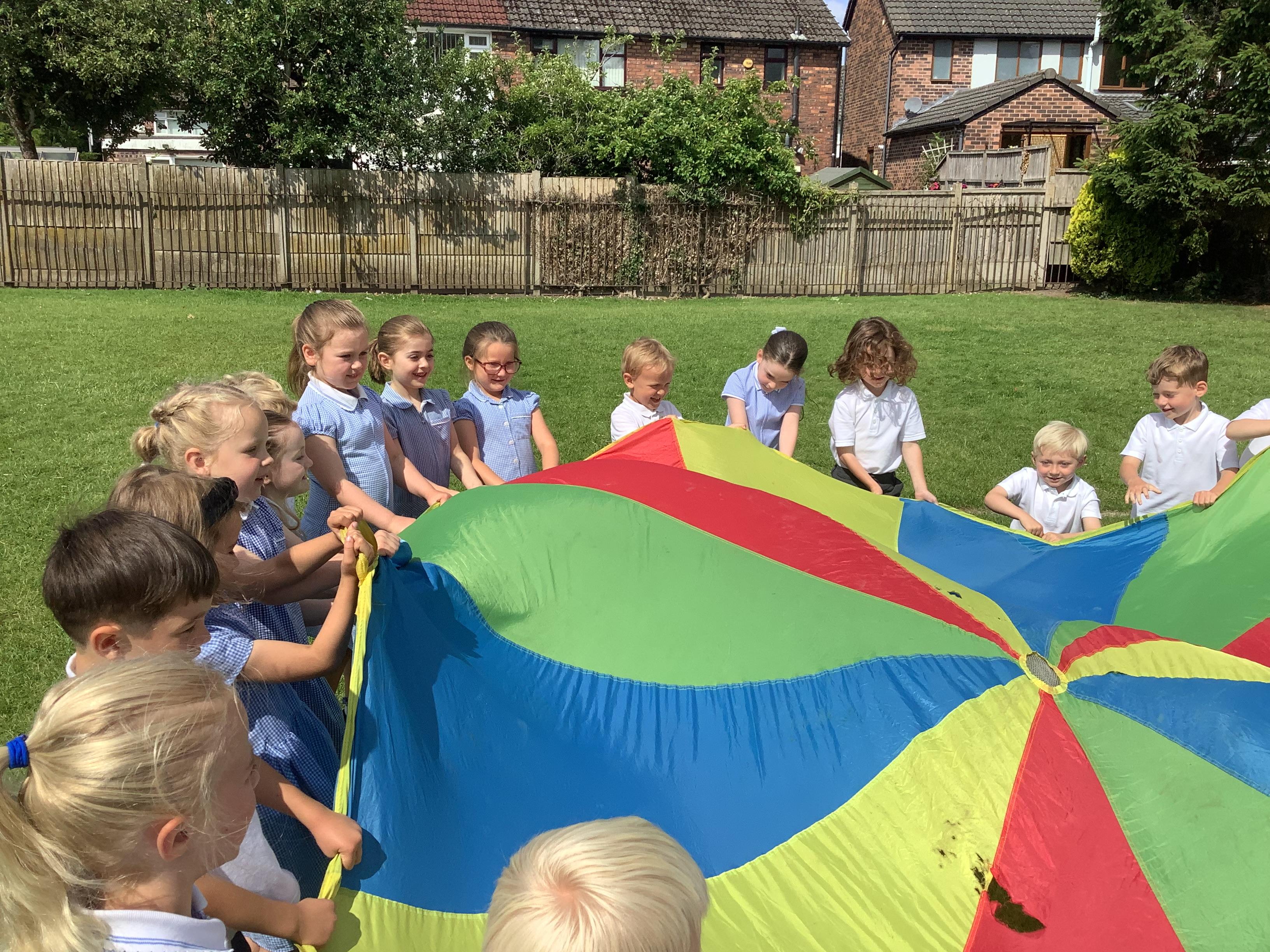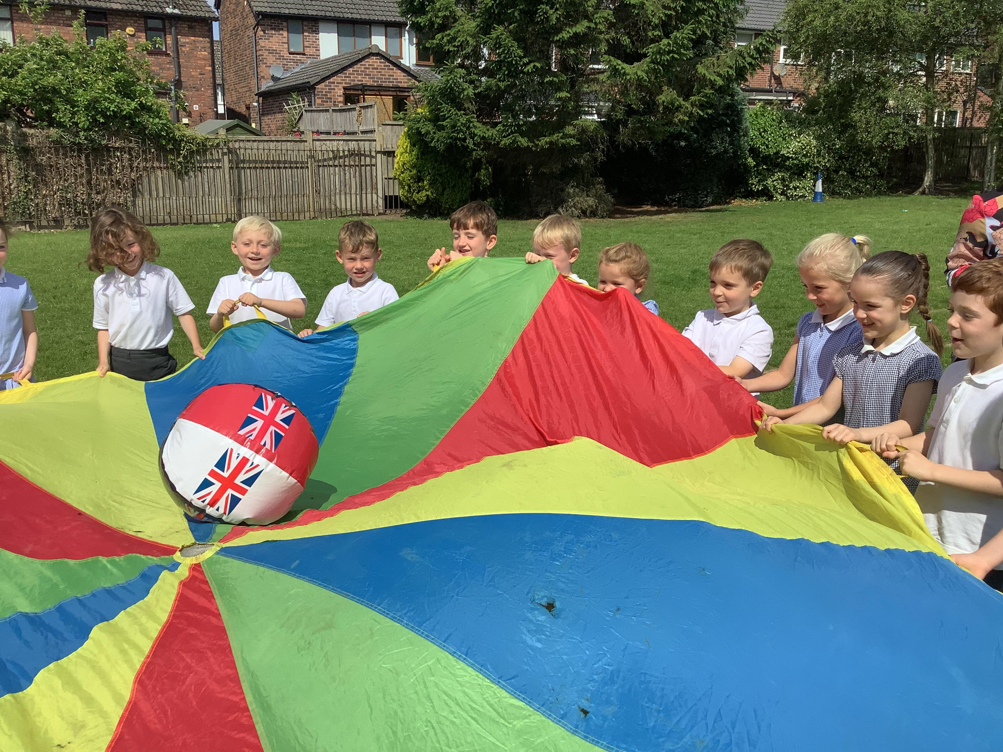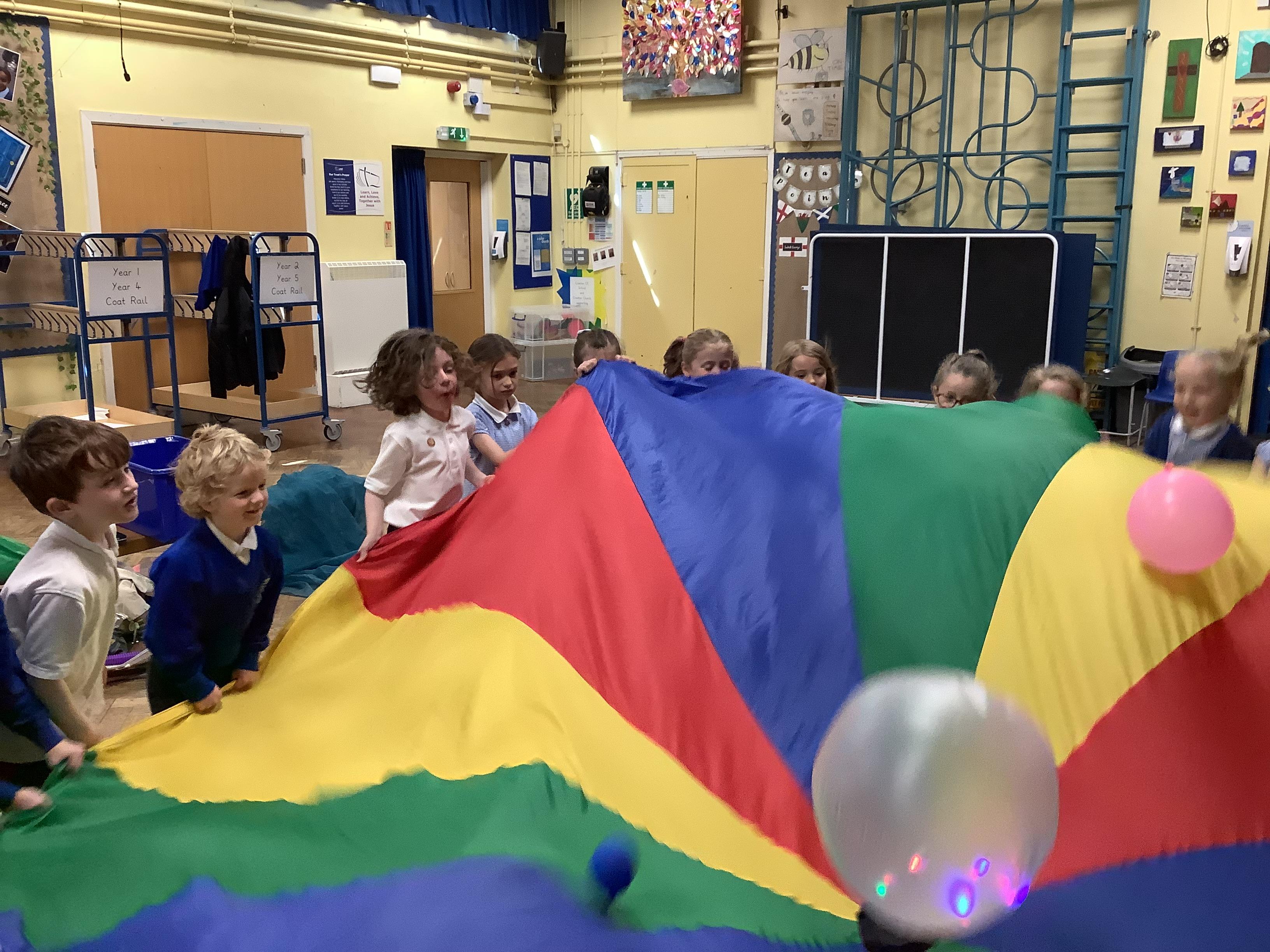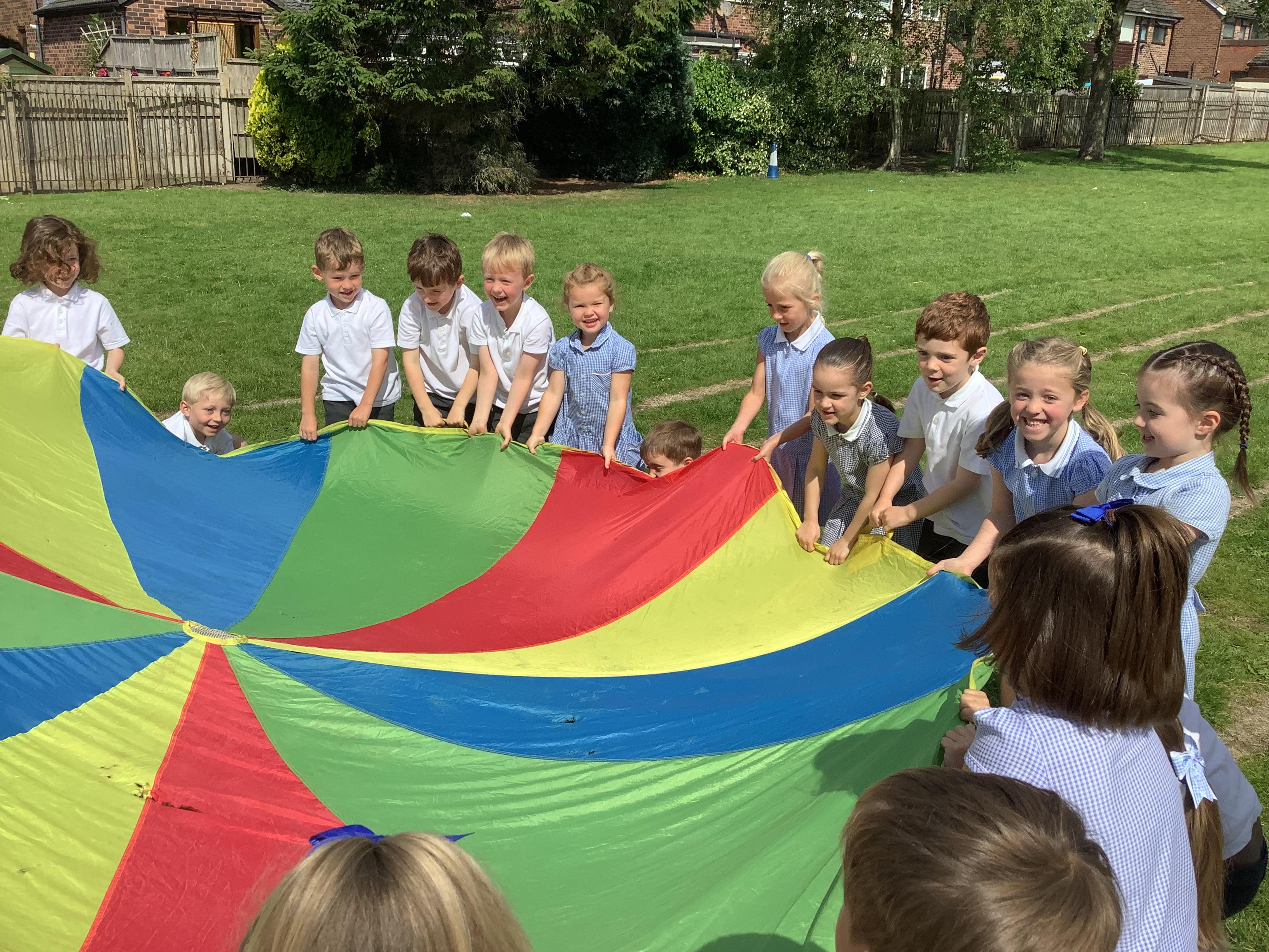 We had so much fun on Wednesday using the parachute to play a variety of games together. The children were full of joy and laughter as they worked as a team to lift, wave, and run under the parachute.