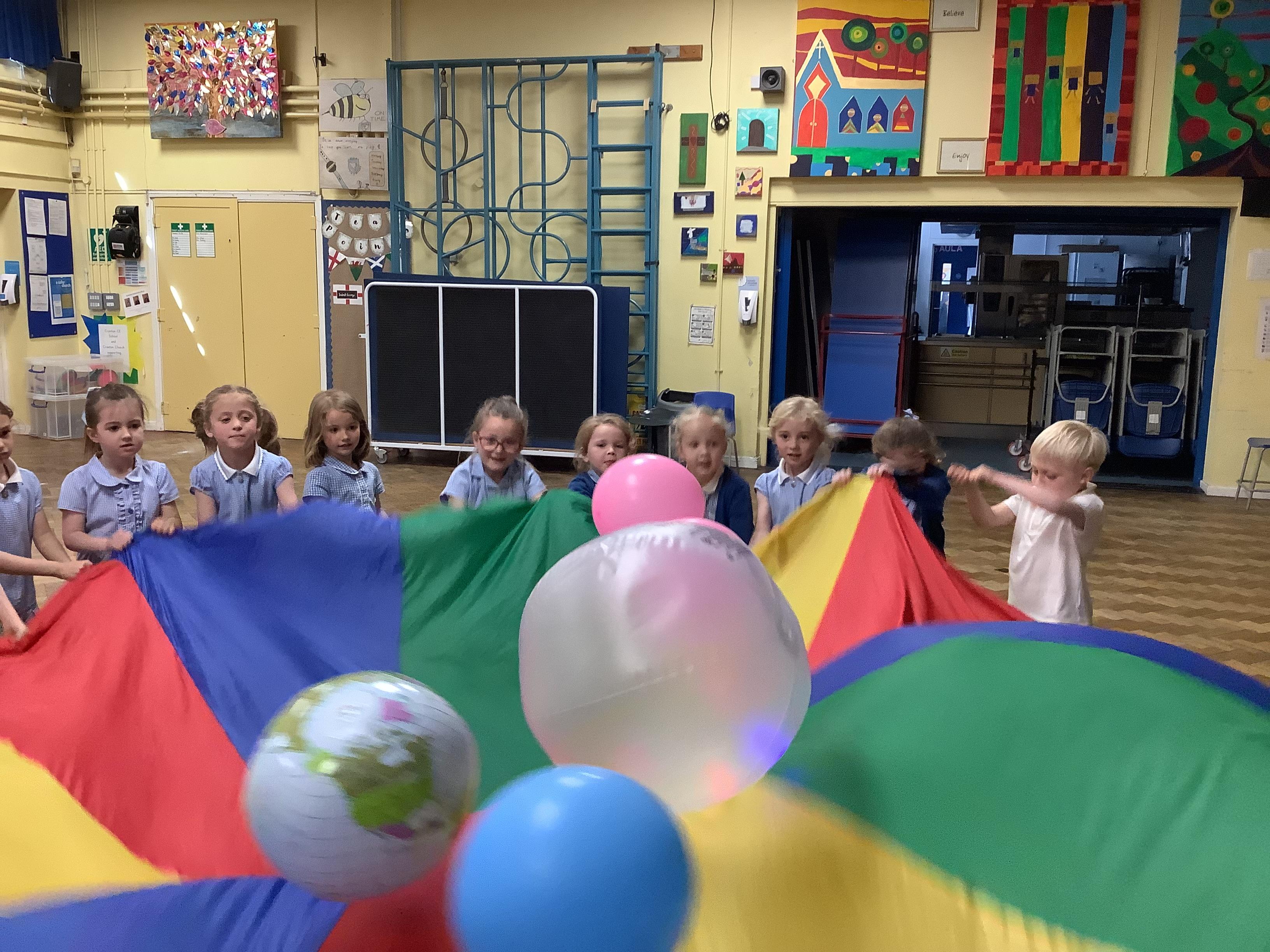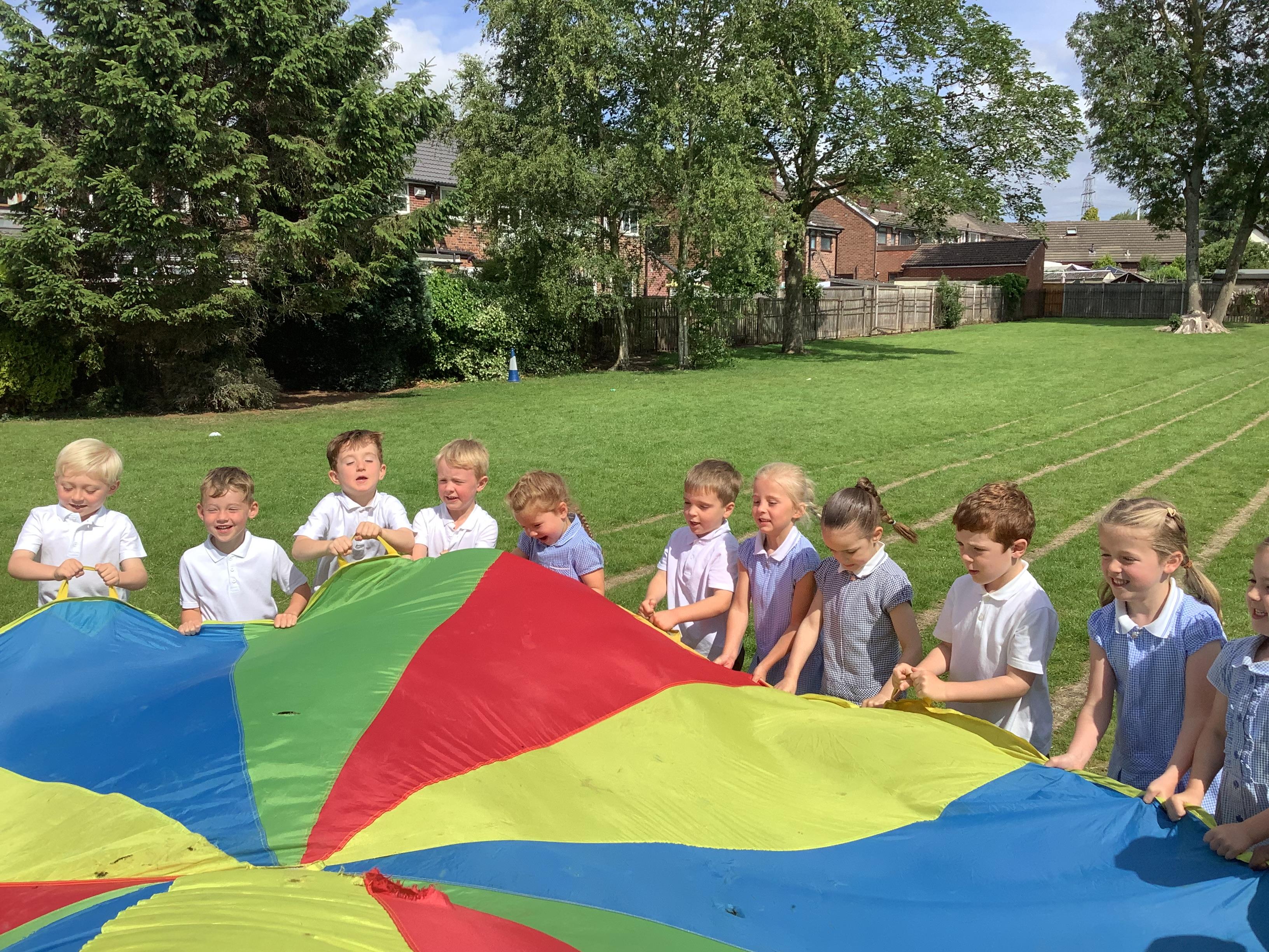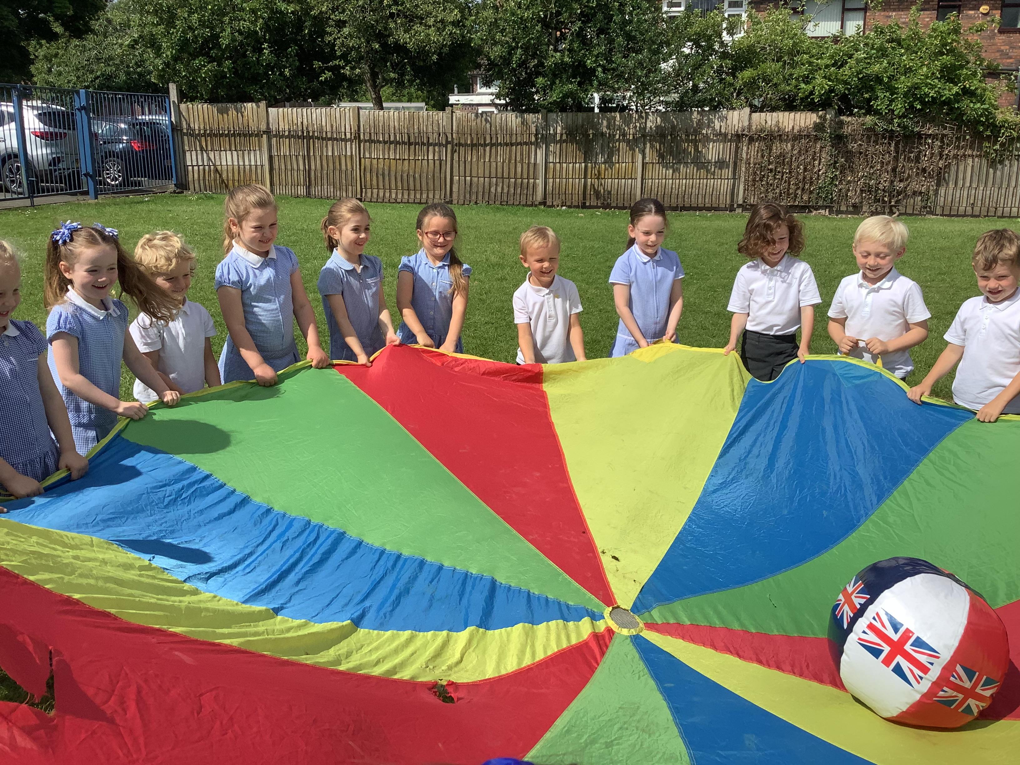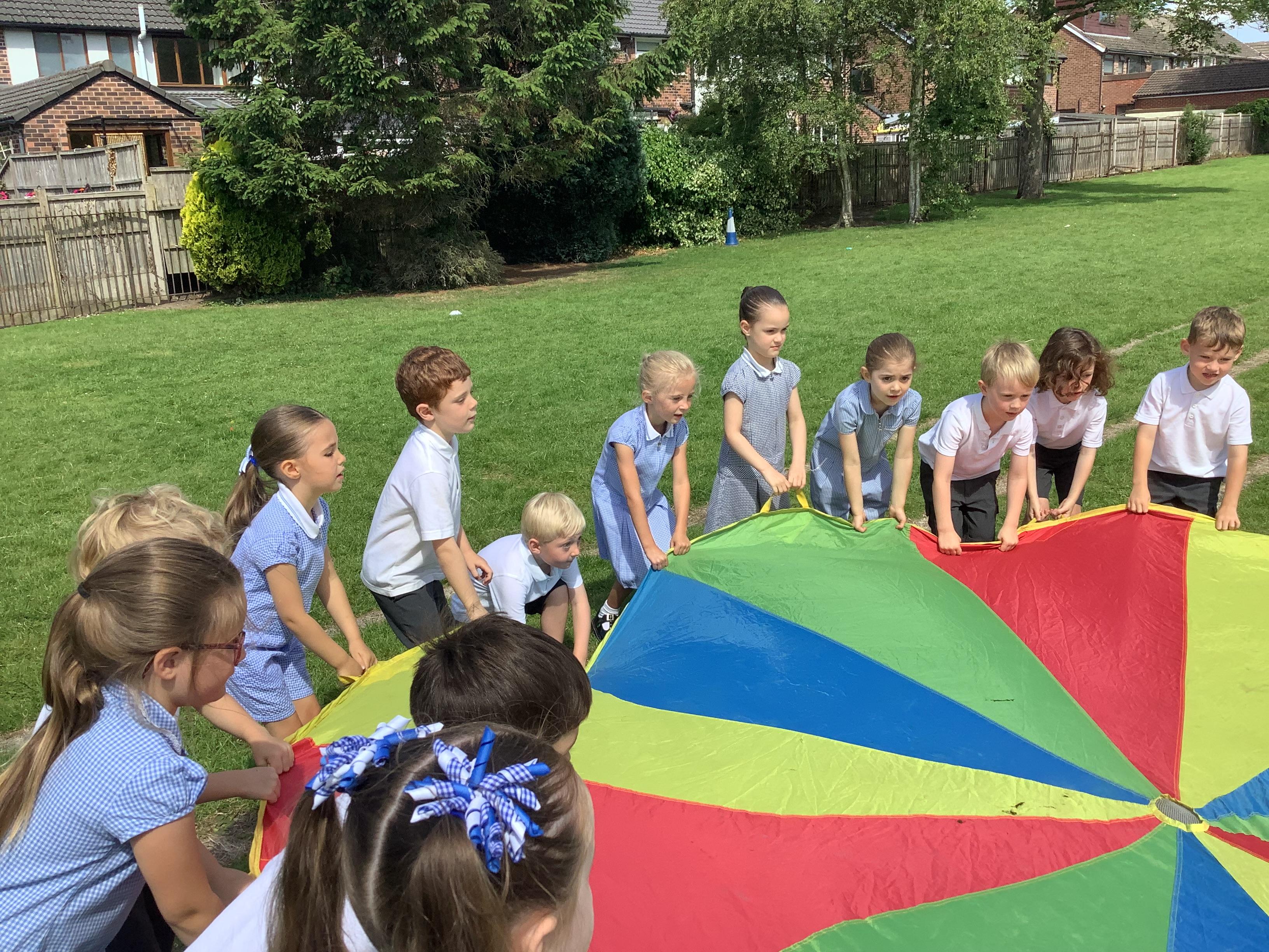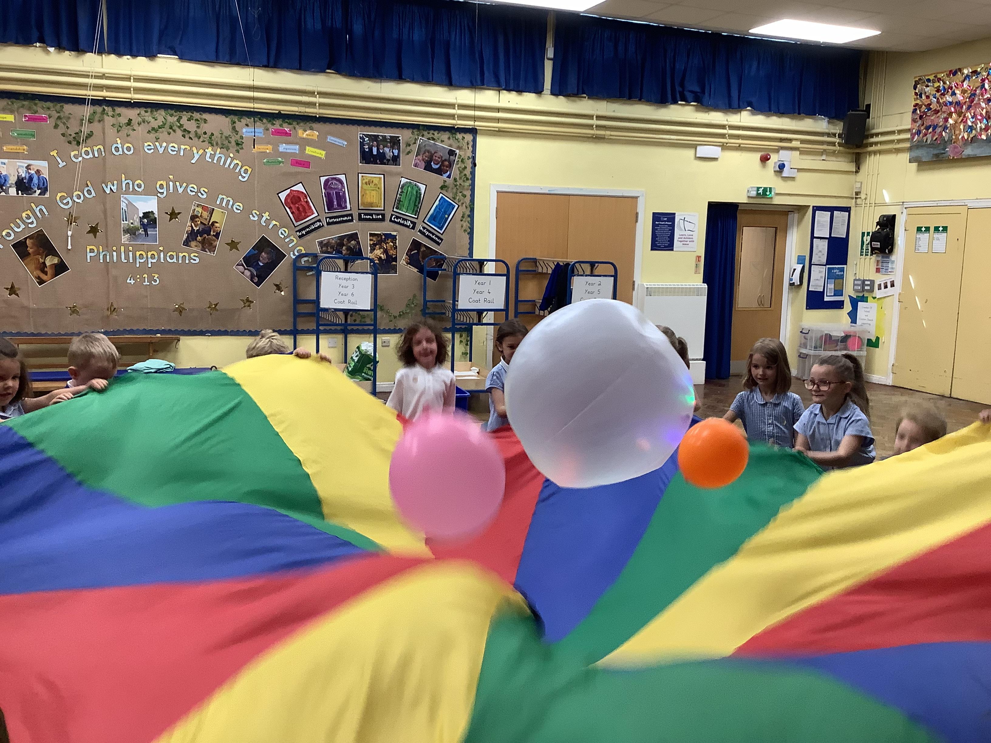 We had so much fun on Wednesday using the parachute to play a variety of games together. The children were full of joy and laughter as they worked as a team to lift, wave, and run under the parachute.